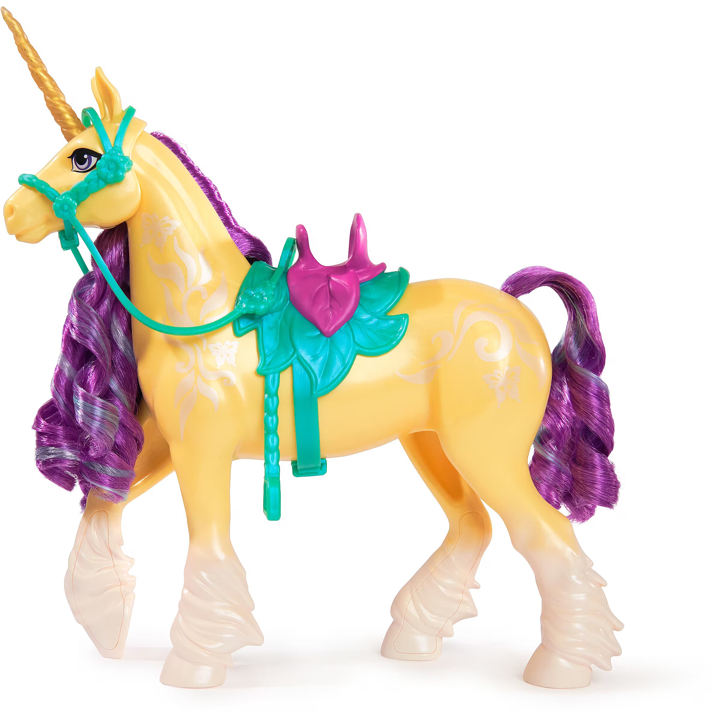LongDesc - Complete your Unicorn Academy doll collection with Ava’s unicorn, Leaf. Inspired by the NETFLIX animated show and best-selling book series where friendship reins, this 11-inch unicorn toy brings gentle, loving Leaf to life. Beautifully detailed, Leaf features pearlescent Plant Magic markings on her side, a majestic glittery horn, colorful mane and tail, and removable bridle and saddle doll accessories for added play. Gently move Leaf’s head to bring out her personality and relive the magical bonding experience between unicorn and rider with Ava. Brush Leaf’s soft mane and tail with Ava’s styling tool (not included, sold separately with doll) and ride into adventure to protect Unicorn Island and its magic. For more ways to experience Unicorn Academy with your favorite characters, look for Sophia and Isabel dolls and their unicorns, Rainbow Light-up Wildstar and River (each sold separately) and expand your world. The magical bonds between Unicorn Academy students and their unicorns will spark endless imaginative storytelling. For kids who enjoy unicorns and horse toys, dolls & accessories, doll house play, collectibles, plush toys and more, Unicorn Academy toys are fun birthday gifts for girls or gifts for any occasion. Bring home the magic of Unicorn Academy with Leaf.Includes: 1 Unicorn, 1 Removable Saddle, 1 Removable Bridle