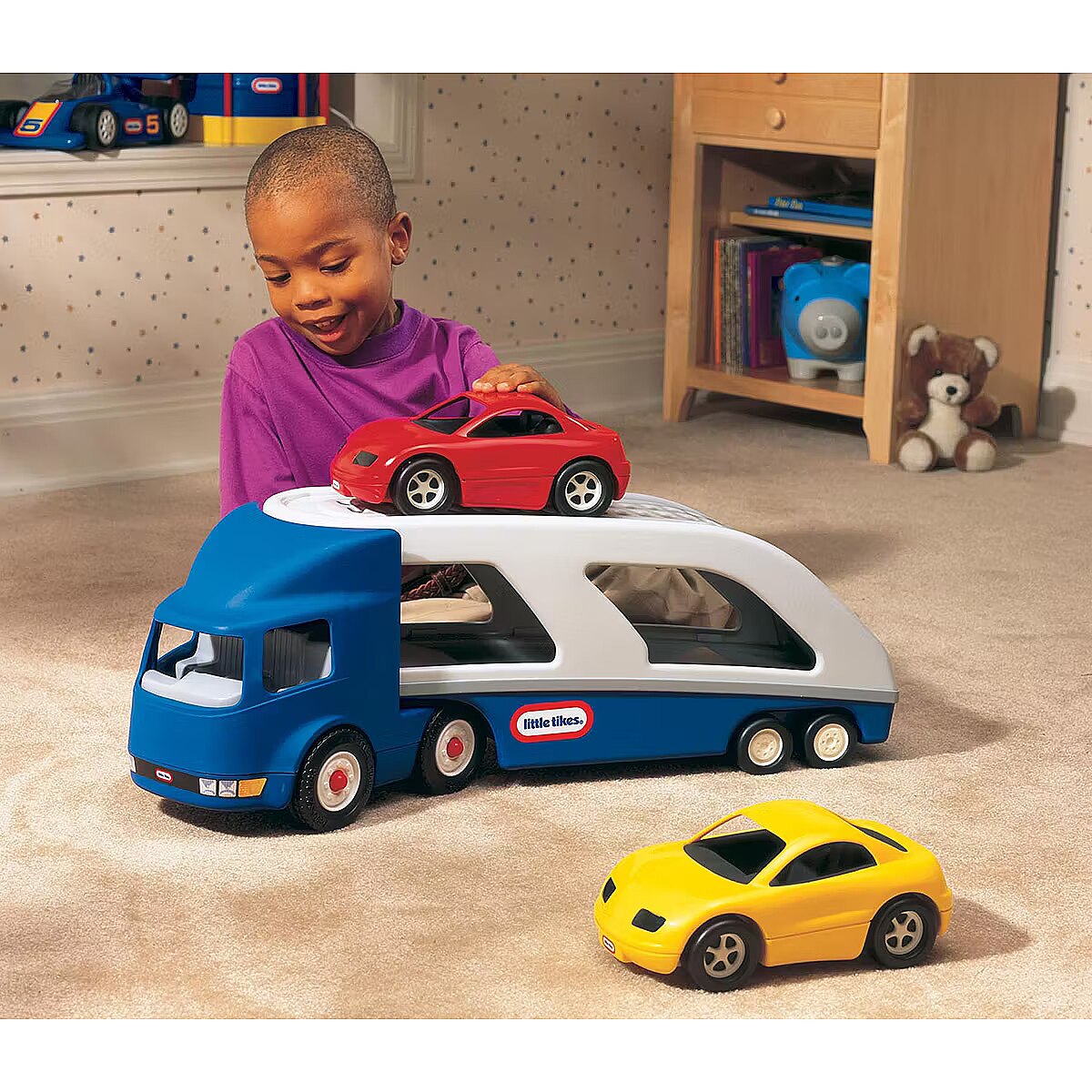 LongDesc - A Little Tikes classic, this car carrier packs in hours of fun – and two toy sports cars! Transport cars in style with this sporty carrier, which includes a ramp that’s easy to flip down. It’s perfect for indoor and outdoor fun and kids will love loading the carrier again and again.
