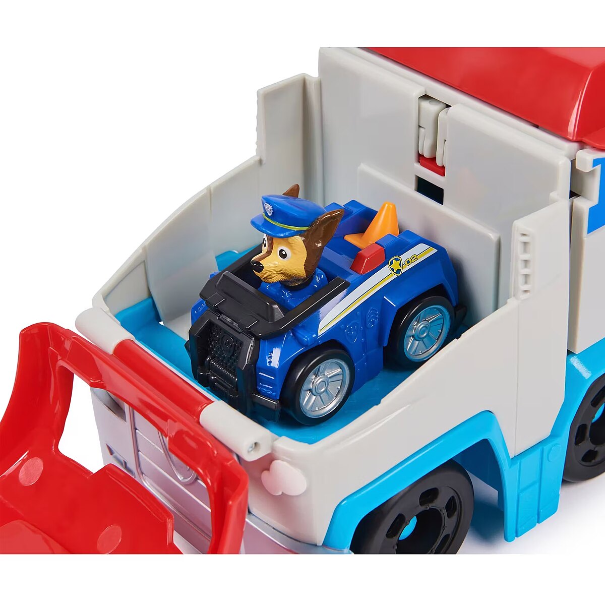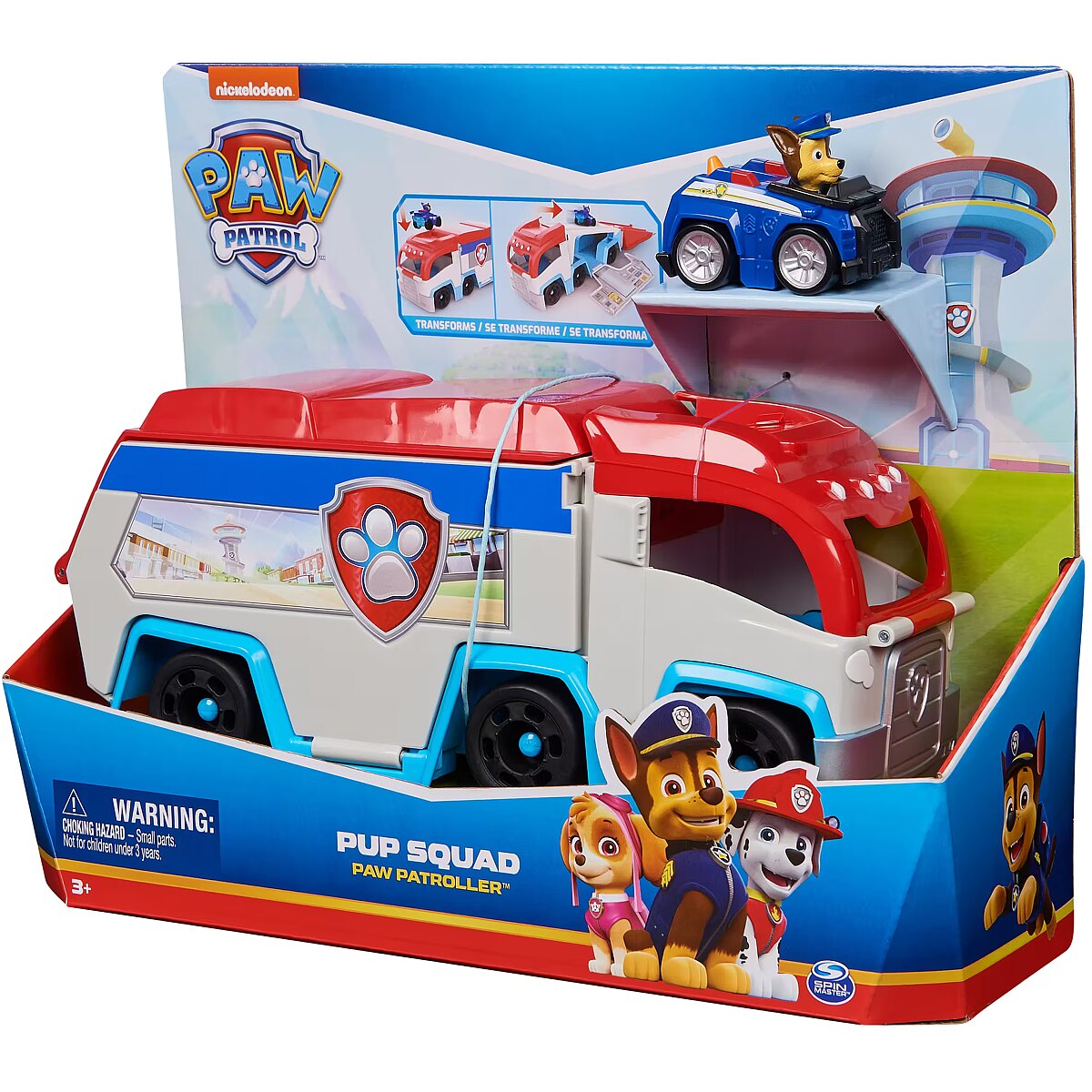 LongDesc - Get ready to launch and race to your next big rescue mission with the Pup Squad Patroller and a collectible Chase, Pup Squad Racer just like you see in the PAW Patrol series! Measuring 10 inches long, and 5 inches tall, this pint-sized vehicle playset features an exciting transformation from a PAW Patroller toy truck, into an awesome mobile command center, complete with vehicle launch ramp and toy storage space, for additional Pup Squad race cars (each sold separately)! When it’s time for a high-speed rescue, remove Chase from the Cab and put Chase on top of the cab to engage the transformation, popping the trailers roof open to convert it into a launch ramp, and lowering the walls to reveal a staging area and additional vehicle storage! PAW Patrol toys for boys & girls are great gifts for kids who are fans of the show, to foster imaginative pretend play and enhance fine motor skills. Relive cherished moments from PAW Patrol seasons, such as the Mighty Pups and the PAW Patrol Movie or create entirely new adventures with individual PAW Patrol pups and their respective toy cars (each sold separately). Elevate the excitement with the complete Rescue Wheels team, including PAW Patrol vehicles, action figures and the all-new PAW Patrol Tower HQ for endless hours of turbo-charged adventures inspired by the series!