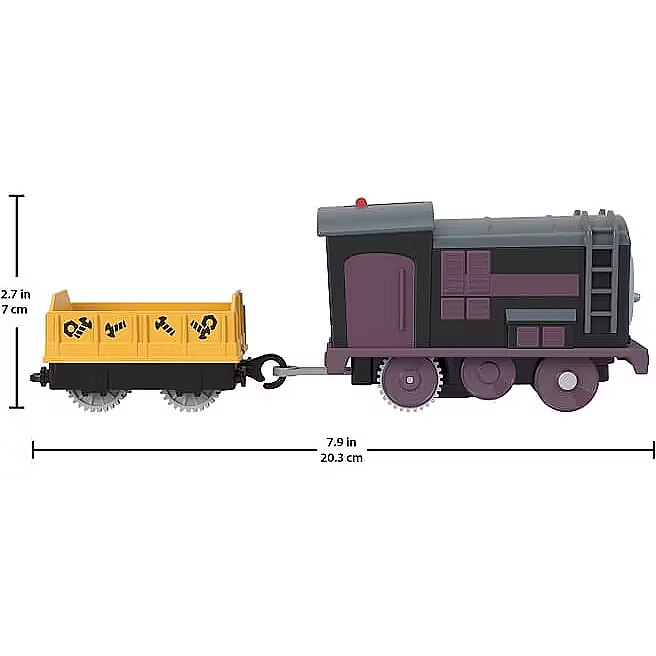 Description - Mali kolejarze mogą wyruszać ku przygodzie w stylu stylu Tomka i Przyjaciół dzięki tej lokomotywie z napędem od Fisher-Price! Tomek może być najlepszą niebieską lokomotywą, ale Diesel chce udowodnić, że to on jest prawdziwym numerem jeden, więc jeździ najszybciej i rozwozi największe ładunki. Przesuń przełącznik na dachu lokomotywy z napędem, aby posłać Diesela w wesołą podróż po dowolnym torze Tomek i Przyjaciele, poza tymi z linii drewnianej. Zbierz pozostałe lokomotywy z napędem Tomek i Przyjaciele, aby stworzyć własną linię kolejową pełną Naprawdę Użytecznych Lokomotyw i przeżywać niepowtarzalne przygody na wyspie Sodor. (Zestawy torów i dodatkowe lokomotywy sprzedawane oddzielnie). Zabawka wymaga 2 baterii typu AAA. Wymyślaj niesamowite przygody w stylu Tomka i Przyjaciół z tą lokomotywką na baterie, która wygląda jak Diesel. Mali kolejarze mogą przesunąć przełącznik na dachu Diesela, aby posłać lokomotywę z wagonem w podróż po torze. Ta lokomotywa z napędem jest kompatybilna ze wszystkimi torami Tomek i Przyjaciele poza torami z drewna (zestawy z torem sprzedawane oddzielnie). Lokomotywa ma plastikowe łączniki, aby można ją było przyczepić do innych lokomotyw, pojazdów i wagoników z napędem lub do popychania (sprzedawane oddzielnie w zależności od dostępności). Dla małych konduktorów od 3 roku życia.