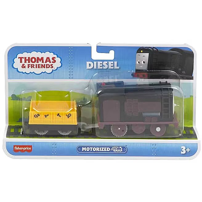 LongDesc - Create new stories on the Island of Sodor with the Thomas & Friends Diesel train engine! This motorised train toy, from Fisher-Price, is compatible with all other Thomas & Friends tracks, except for wood. Send Diesel racing off in his mission to beat Thomas and be known as the “real number one” by flicking the switch on top of the engine, with the added connectors attaching to other engines to expand the storytelling possibilities of this toy train! Track sets and trains sold separately. Requires 2 AAA batteries. Great gift for ages 3+.