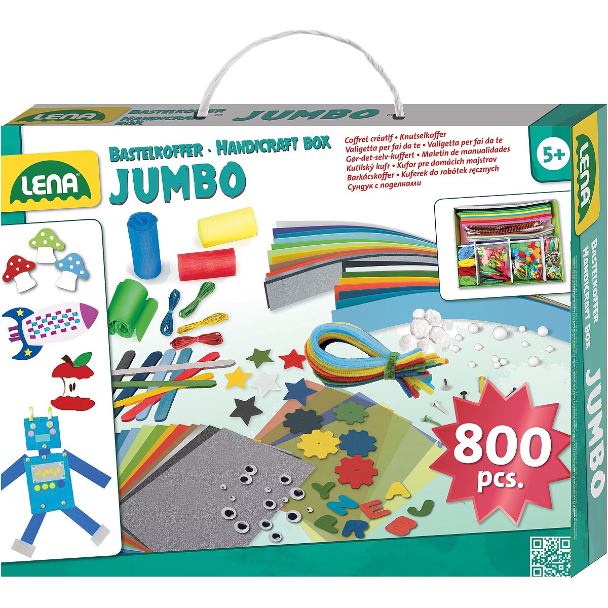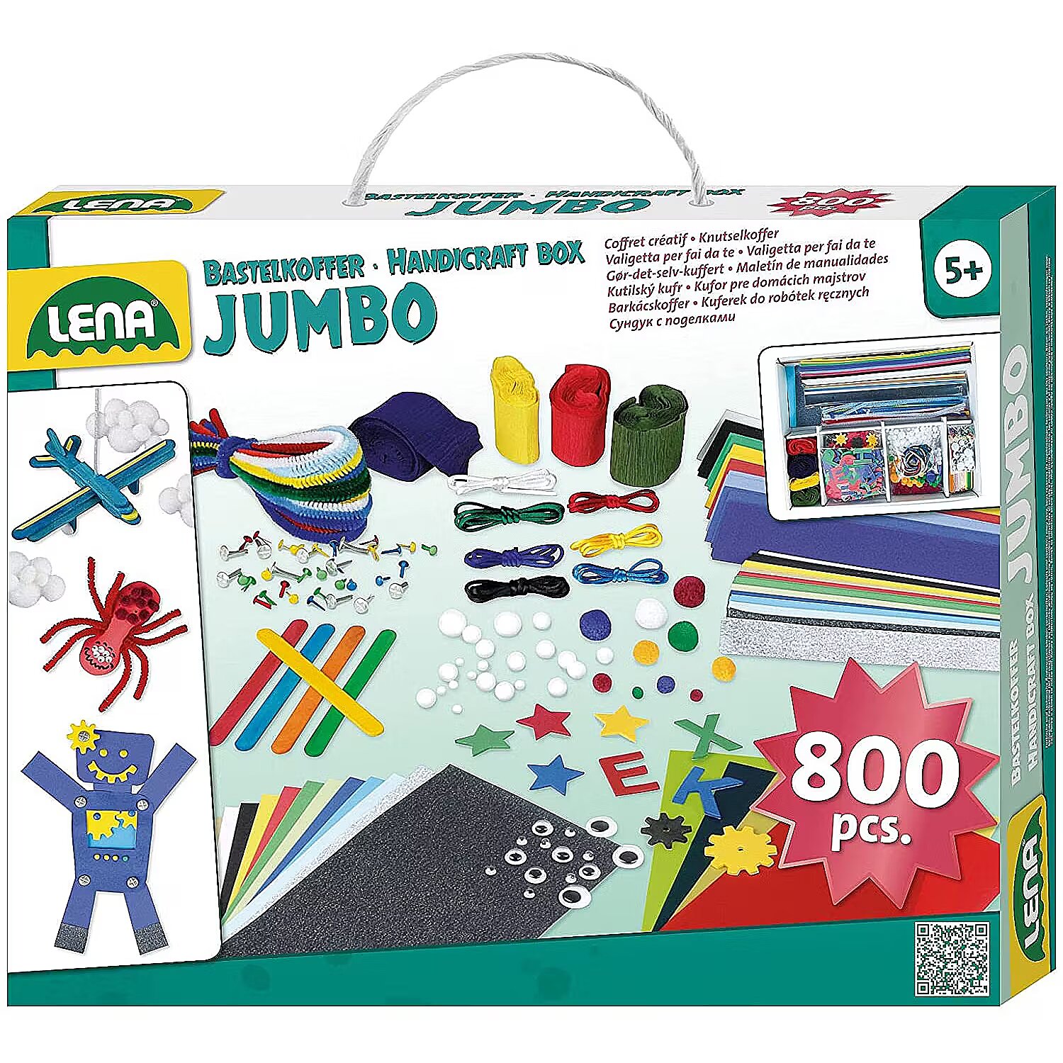 Description - The LENA Jumbo Blue craft case contains materials for creative play such as coloured paper, foam rubber elements, wobbly eyes, pom-poms, ice cream sticks, polystyrene balls, ribbons and much more. The case contains up to 800 pieces. The set is suitable for children over 5 years old.