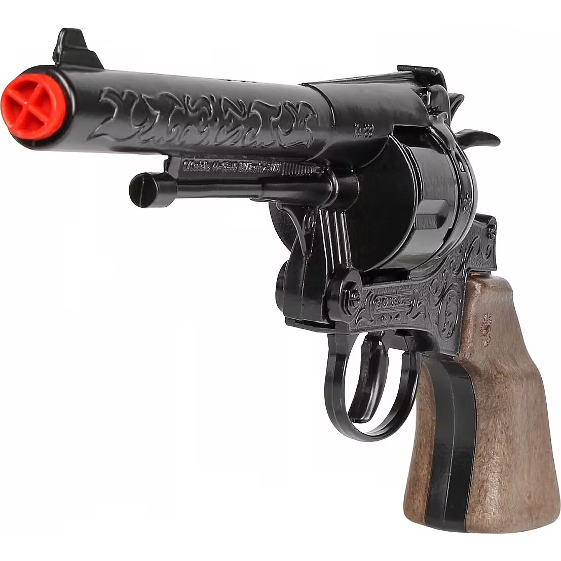 Description - GONHER 122/6 METAL COWBOY REVOLVER 12 CARTRIDGES Metal cowboy revolver for 12 cartridges with drum.