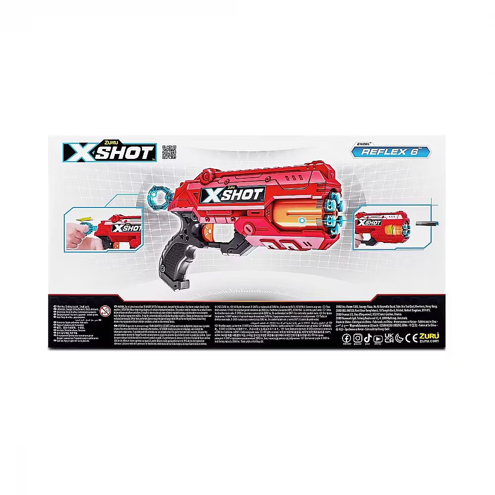 Description - Orange EXCEL REFLEX launcher (12 darts) Destroy your opponent with X-Shot Reflex 6. Attack the competition with a rapid burst of 6 shots in a matter of seconds using the rotary mechanism of the drum magazine. Speed and reliability make this launcher unstoppable! Enjoy excellent range with shots up to 27 m away. End the battle before your opponents even start!