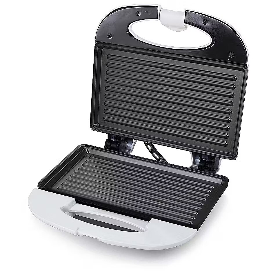 Key features: Power: 700 W Voltage / Frequency: 220–240 V, 50/60 Hz Plates: non-stick coating with grill texture Capacity: 1–2 sandwiches per cycle Indicators: light indicators (power and heating) Safety: heat-insulated handle and body Storage: vertical storage possible Color: white