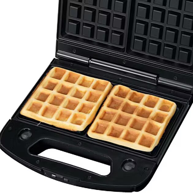 • 3 maināmas plāksnes ar pretpiedeguma pārklājumu: sviestmaižu plāksnes, grila plāksnes, plāksnes Beļģijas vafelēm