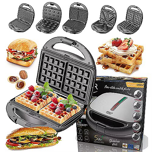Name - Adler | Sandwich maker | AD 3040 | Number of plates 5 | Multigrill | Number of pastry 2 | 1200 W | Ceramic coating | Black