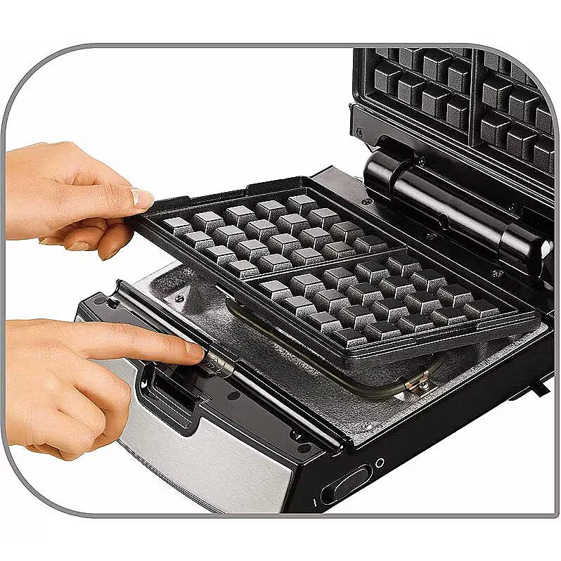 Komplektis on kaasas 4 küpsetusplaati ja retseptiraamat (võileivad, grill/panini, vahvlid ja miniküpsised). Erinevaid lisaplaate on võimalik juurde osta. • Eemaldatavad küpsetusplaadid