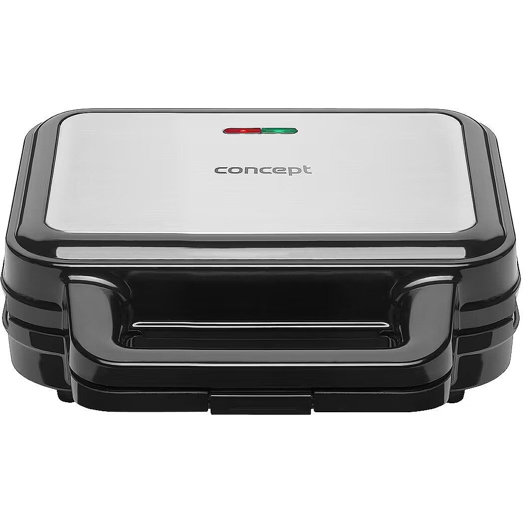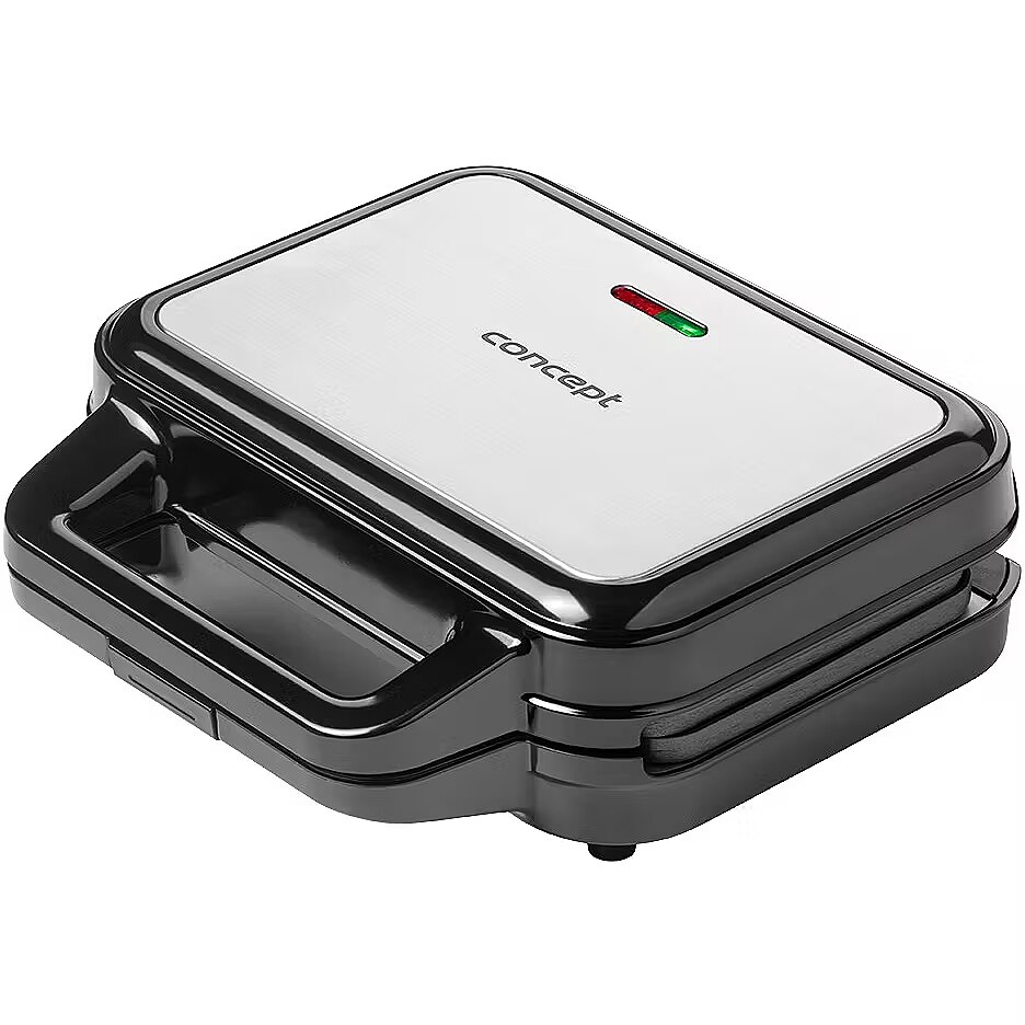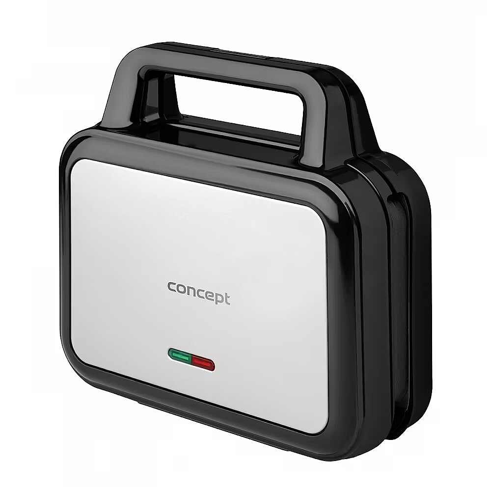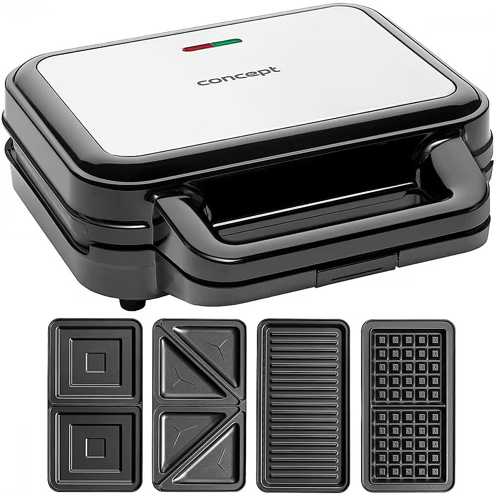 Description - XXL 4 v 1 900 Watt Concept SV3070 interchangeable sandwich toaster with removable plates 4 w 1 The SV3070 multifunctional sandwich toaster will help you quickly prepare breakfast, snacks and dinner. It is equipped with four interchangeable XXL plates on which you can prepare crispy toast, fragrant waffles or grilled delicacies in no time. Very easy to maintain The plates have a non-stick surface, so your food will not burn. Subsequent cleaning will therefore be very quick and easy. A great advantage is that the plates can be easily separated from the body of the toaster oven. Once they have cooled down, simply put them in the dishwasher or wipe them off with a damp cloth or paper towel. Safety The sandwich toaster is equipped with indicator lights. Thanks to the cold handle, you won't burn yourself while working, and the safety hinge will ensure that the plates are locked in place during operation. The toaster also has non-slip feet for better stability. Technical specifications: Stainless steel surface combined with black plastic Preheat indicator Replaceable plates Easy to maintain Non-stick plate surface The plates are dishwasher safe Additional sandwich size 14 x 13 cm Power consumption: 900 W Voltage: 220-240 V