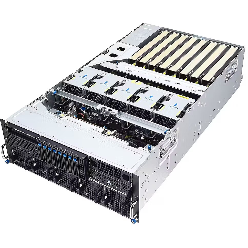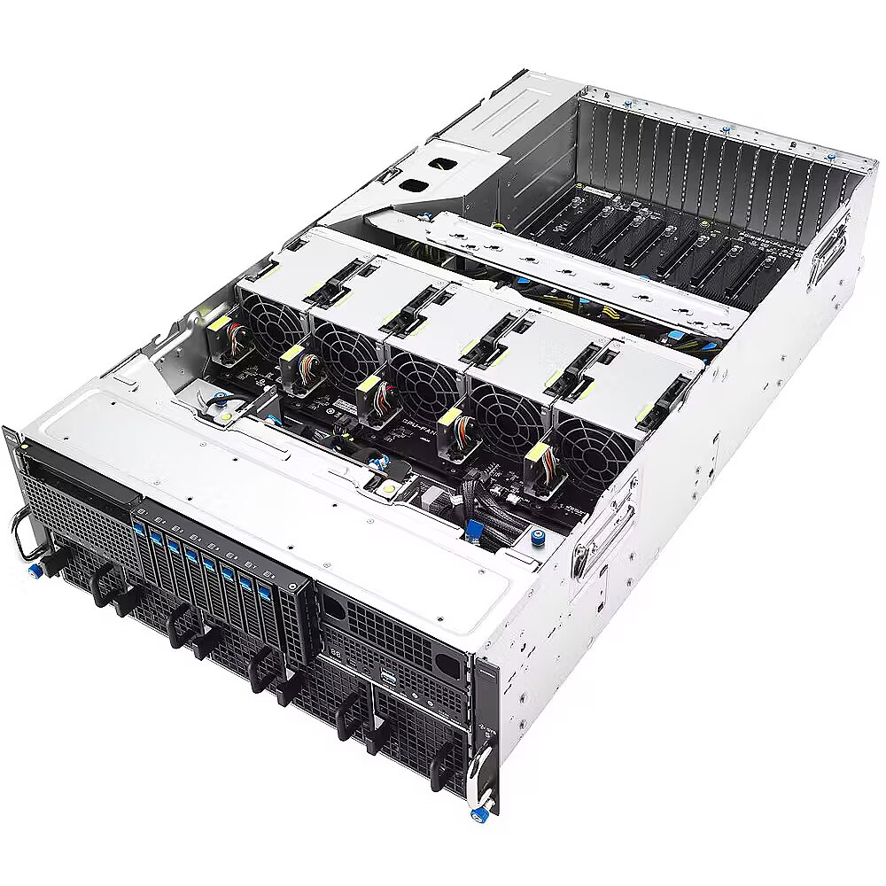 Asus Platforma Asus Rack (4U) ESC8000A-E13P AMD EPYC 9005 (8xNVMe, 2xM.2, 2x10Gbe, IPMI, 3200W)