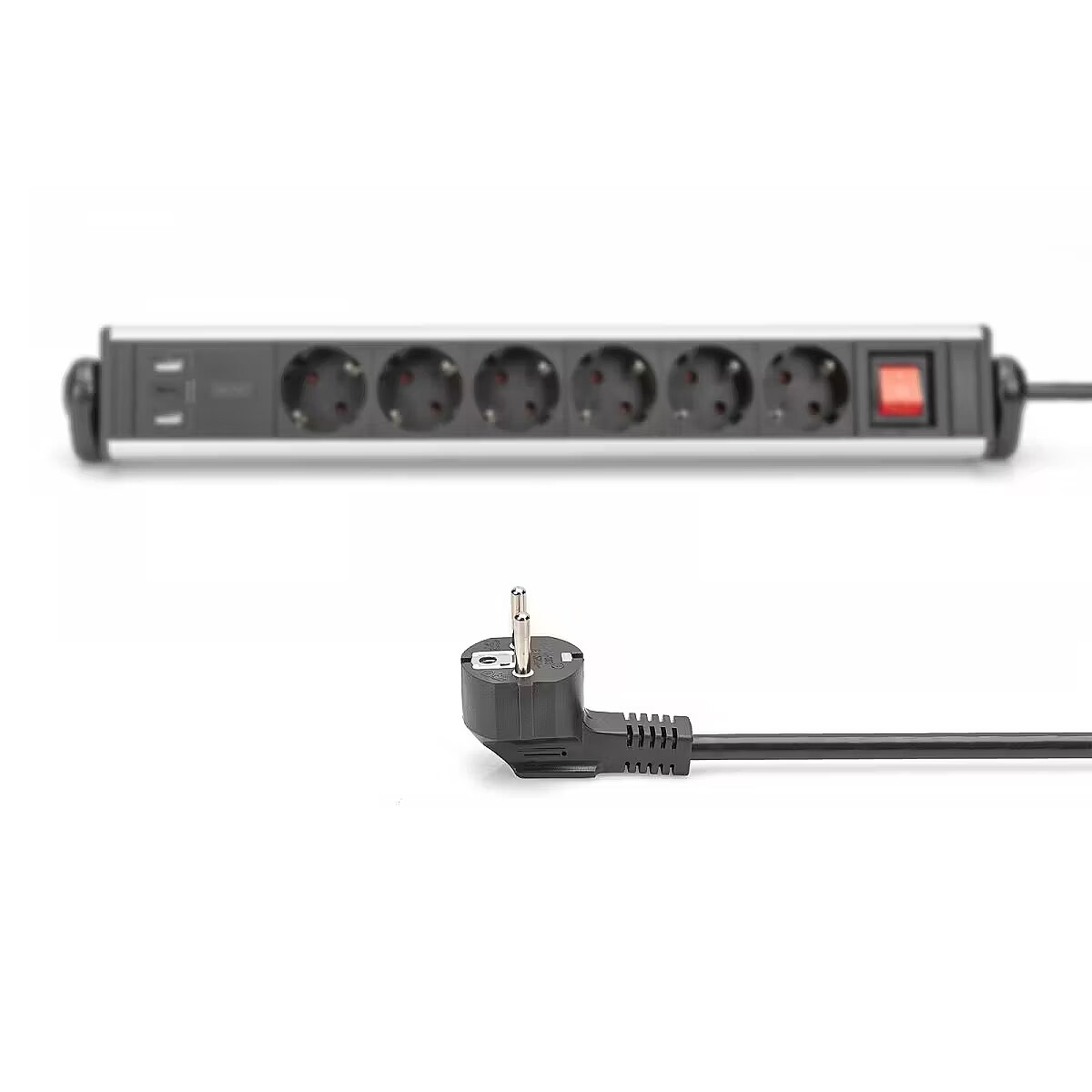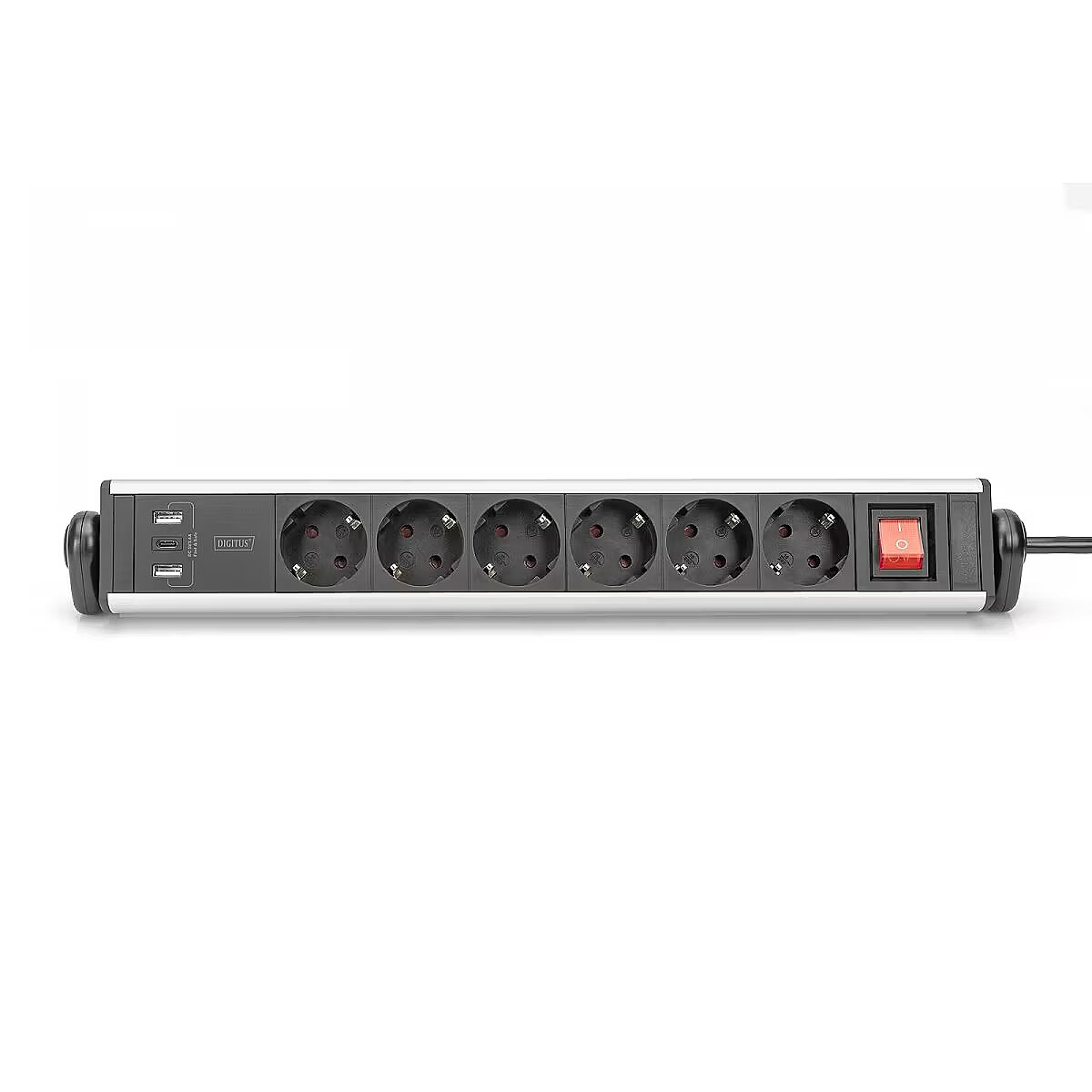 Name - Digitus 6-Fach Steckdosenleiste mit 2xUSB-A; 1xUSB-C und Schalter Schwarz/Silver