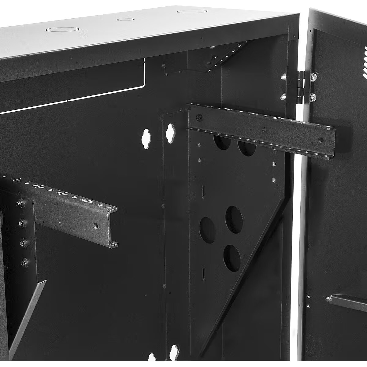 LongDesc - Vertically wall-mount your server or networking equipment in this 6U network cabinetThis 6U vertical server cabinet offers a space-saving way to keep your network and server equipment secure. With its 30 in. depth and a weight capacity of up to 200 lb. (90.7 kg), the server rack/cabinet is designed to fit your needs. It also features an additional 2U mounting bracket positioned toward the top of the enclosure, that you can use to mount patch cables or other shallow rack-mount equipment.Free up spaceWall-mount your equipment, even if you don’t have enough space for a full-sized rack or cabinet. This low-profile server cabinet is perfect for areas where space is at a premium, such as an office. The cabinet saves space by extending only minimally from the wall and housing the length of your equipment vertically. This reduces the horizontal footprint of your equipment while still providing plenty of room for your servers, patch panels, and switches.Keep your equipment cool and secureTo help keep your equipment secure, the vertical server cabinet/network rack features a sturdy metal design and a lock on both the door and access panel. It is also vented, providing passive cooling to help keep your equipment running at suitable temperatures.Easy, hassle-free installationThe server rack comes fully assembled and includes all of the necessary hardware to install equipment, making installation fast and easy. The mounting holes are spaced 16 in. apart, making it suitable for mounting on almost any wall, based on common North American wall-frame stud spacing.The RK630WALVS is backed by a StarTech.com 5-year warranty and free lifetime technical support.The StarTech.com Advantage- Total load capacity of 200 lb. (90.7 kg)- Save space by mounting your server vertically to the wall- Extra 2U of space for switches and patch cables