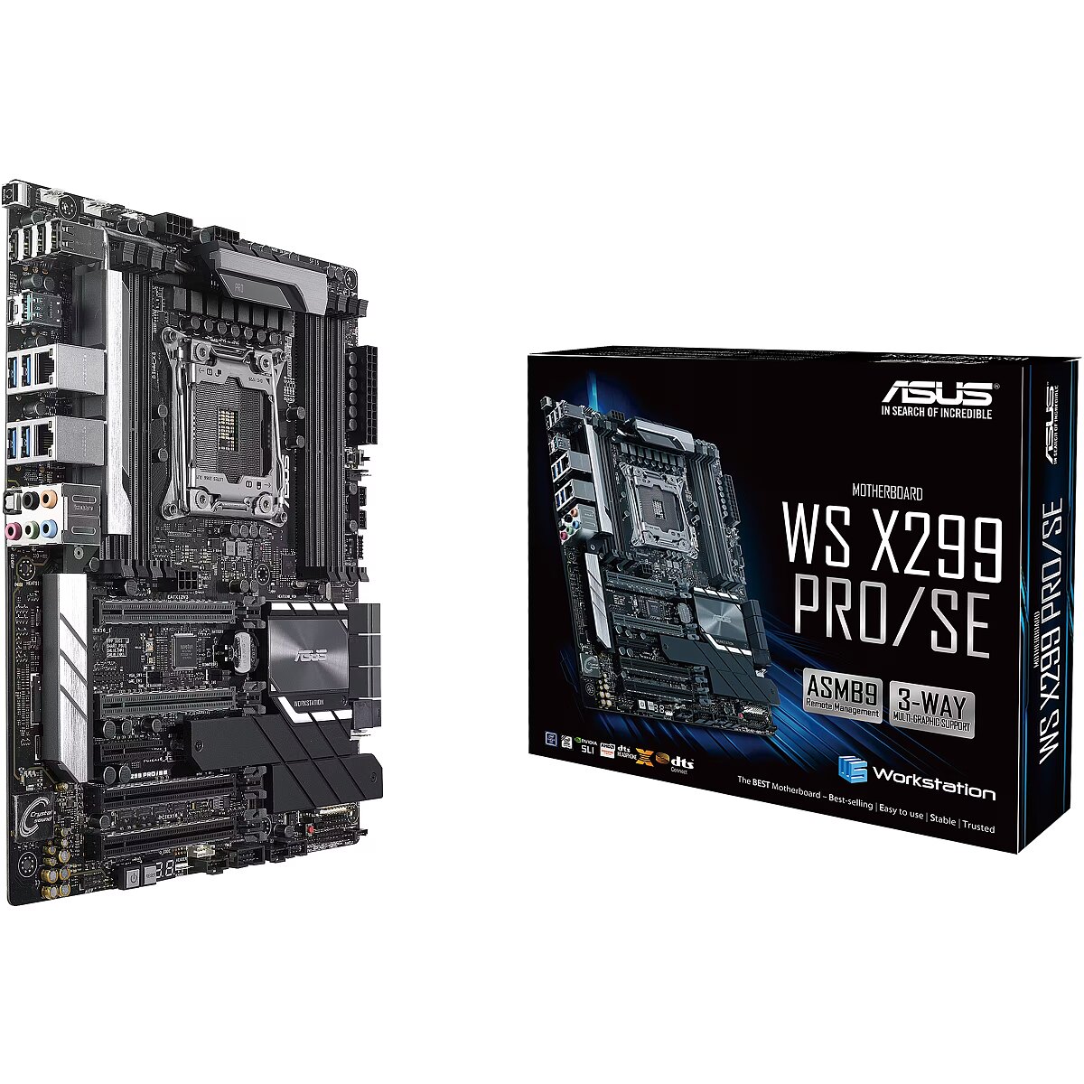 LongDesc - Comprehensive IT Infrastructure Management SolutionWS X299 PRO/SE features an embedded iKVM module and is bundled with ASUS Control Center software to provide comprehensive in-band and out-of-band management features for small and mid-size businesses: The embedded ASMB9-iKVM module supports remote BIOS updates, fans control, standalone KVM, video recording, and BSOD capture, providing around-the-clock remote monitoring and diagnostics — even if the operating system is down or offline — through a user-friendly, web-based graphical interface that works with all major browsers. ASUS Control Center (ACC) is a centralized and integrated IT management platform for monitoring and controlling ASUS commercial products, including servers, workstations and digital signage. ACC enables remote BIOS updates, monitoring of multiple systems via mobile devices, and one-click software updates and dispatching, allowing easier server management for any IT infrastructure.Flagship PerformanceMake your memory go fasterWith optimized trace paths for time-aligned signaling and minimal crosstalk, third-generation ASUS T-Topology offers enhanced memory stability and compatibility, allowing support for memory speeds of DDR4-4133MHz and beyond.OC Design – ASUS PRO Clock II TechnologyWS X299 PRO/SE includes a dedicated base-clock (BCLK) generator that extends CPU and memory overclocking margins. This custom solution works in tandem with the TPU to enhance voltage and BCLK overclocking control, providing the flexibility to extract every ounce of performance from the Intel Core X-series processors.Multi-GPU supportWith support for both NVIDIA SLI and AMD CrossFireX 2/3-WAY configurations, WS X299 PRO/SE enables multi-GPU setups so you can harness the full power of the latest graphics technologies to drive games at 4K and beyond.Cooler by DesignUltra-efficient VRM HeatsinkDesigned for the powerful Intel Core X-series processor with up to 18 cores, WS X299 PRO/SE features a capable thermal design to ensure maximum performance with no CPU throttling. Consisting of an ultra-efficient VRM heatsink with a metal fin array design that maximizes surface area for heat dissipation, plus two additional heatsinks and a connecting heatpipe to further increase cooling performance, this innovative thermal design ensures WS X299 PRO/SE is always ready to handle any task, no matter how demanding.Connect everything, ultra-fastDual Onboard M.2 & M.2 heatsinkPerfected cooling for unleashed performanceWS X299 PRO/SE features dual onboard M.2 slots, each operating at X4 PCI Express 3.0 to provide an abundant 32Gbps of bandwidth. Both slots sit below the X299 chipset and are covered by a heatsink that reduces drive temps by as much as 20°C, ensuring peak performance under all scenarios.U.2 connectorJoin the NVMe revolutionThe revolutionary specification that lets your SSDs scream at top speed. Simply attach your choice of drive and experience data-transfer speeds of up to 32Gbps — and free up a PCIe slot for another expansion card.Intel Optane memoryIntel Optane memory readyIntel Optane is a revolutionary non-volatile memory technology supported by WS X299 PRO/SE. Intel Optane memory modules accelerate attached storage to reduce boot and load times, so everything feels faster and more responsive.VROCUpgrade your RAIDUnleash the WS X299 PRO/SE Virtual RAID on CPU (VROC) with the addition of an ASUS Hyper M.2 X16 Card, which allows you to attach up to four PCIe 3.0 x16 M.2 drives — for a total bandwidth of up to 128Gbps. PCH-based RAID arrays are bottlenecked by the 32Gbps limit of the DMI bus. VROC obliterates that limit by allowing you to utilise CPU PCIe lanes to configure a bootable RAID array that can transfer data at insane speeds.USB 3.1 Gen 2 front-panel connectorFuture-proof connectivityWS X299 PRO/SE's front panel USB 3.1 connector is ready for next-gen PC cases and devices.Dual Intel server-class Gigabit LANFor more reliable networking, WS X299 PRO/SE features the latest server-class dual Intel Gigabit LAN ensuring lower CPU utilization and temperatures outstanding performance as well as better support for diverse operating systems. The dual Ethernet ports also support teaming which combines the network links to provide higher throughput or redundancy in case of failure.