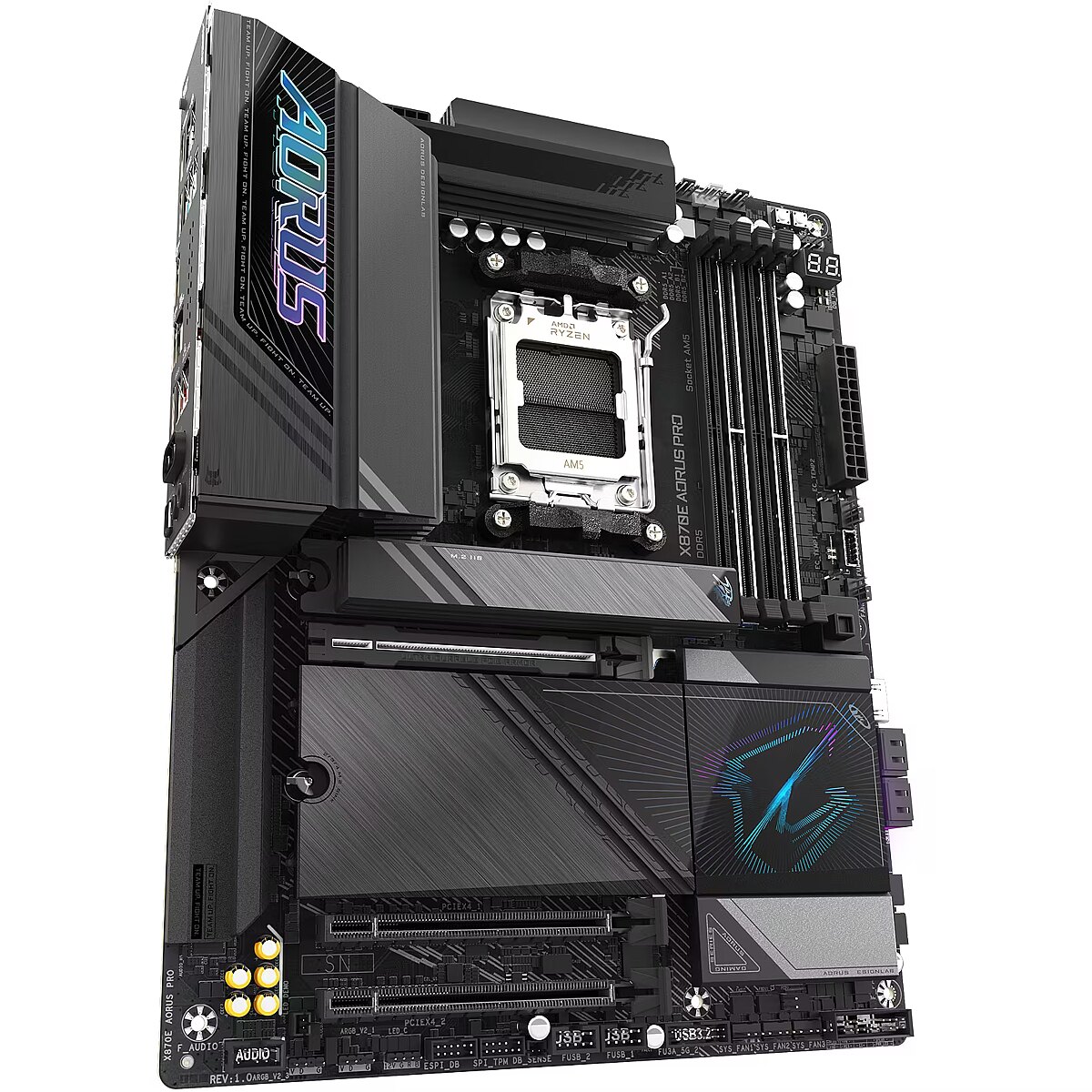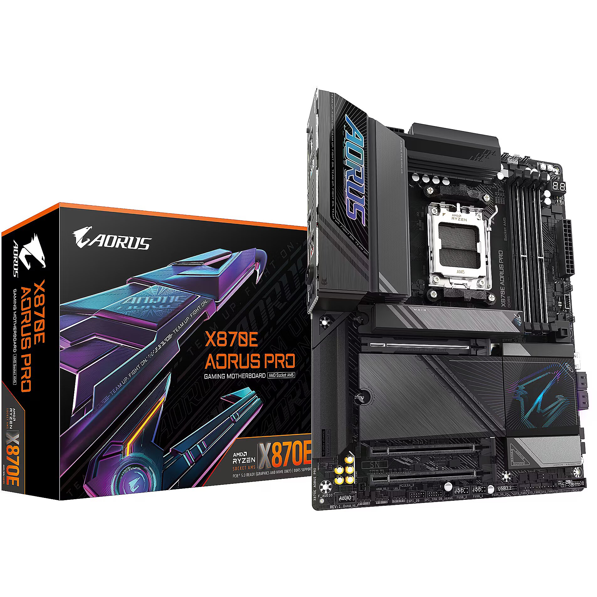 Description - X870E AORUS PRO (rev. 1.1) AMD Socket AM5:Supports AMD Ryzen™ 9000 / 8000 / 7000 Series Processors Digital twin 16+2+2 phases VRM solution Dual Channel DDR5:4*DIMMs with AMD EXPO™Memory Module Support WIFI EZ-Plug: Quick and easy design for Wi-Fi antenna installation EZ-Latch Plus:PCIe and M.2 slots with Quick Release & Screwless Design EZ-Latch Click:M.2 heatsinks with screwless design Sensor Panel Link:Onboard video port for hassle-free in-chassis panel setup Friendly UI: Multi-Theme, AIO Fan Control, and Q-Flash Auto Scan in BIOS and SW New Power Monitor in HWinfo for real-time monitoring on CPU power phases Ultra-Fast Storage:4*M.2 slots, including 3* PCIe 5.0 x4 Efficient Thermal:VRM Thermal Armor Advanced & M.2 Thermal Guard L Fast Networking:2.5GbE LAN & Wi-Fi 7 with directional Ultra-high gain antenna Extended Connectivity:Dual USB4 Type-C with DP-Alt, HDMI Reliable Audio:Realtek ALC1220 HD Audio & Audiophile Grade Capacitors Ultra Durable PCIe Armor : The metal back plate of PCIe x16 slot for enhanced durability PCIe UD Slot X: PCIe 5.0 x16 slot with 10X strength for graphics card