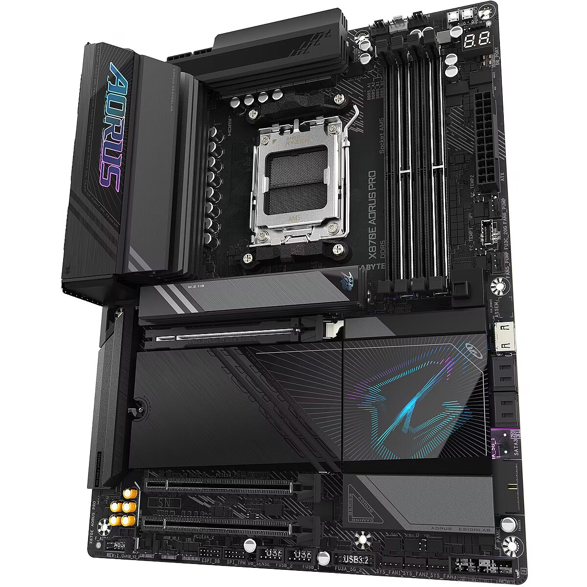 ShortSummaryDescription - GIGABYTE X870E AORUS PRO Motherboard - Supports AMD Ryzen 9000 CPUs, 16+2+2 Phases Digital VRM, up to 8000MHz DDR5 (OC), 3xPCIe 5.0 + 1xPCIe 4.0,Wi-Fi 7, 2.5GbE LAN, USB 4, AMD, Socket AM5, AMD Ryzen 7000 Series, AMD Ryzen 8000 Series, AMD Ryzen 9000 Series, Socket AM5, 256 GB, DDR5-SDRAM