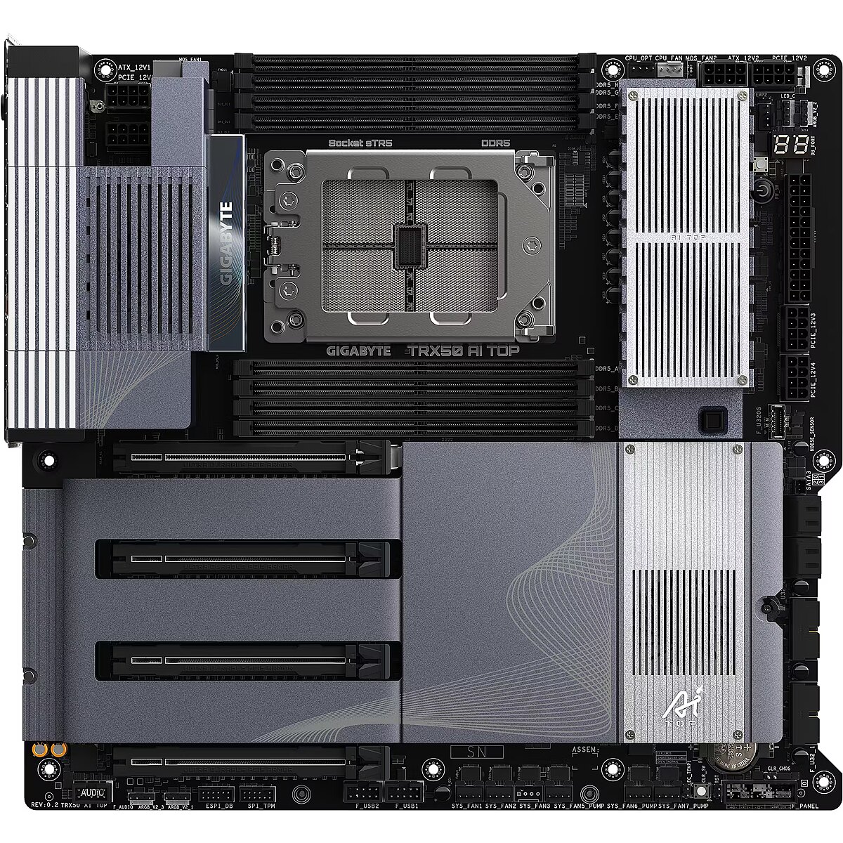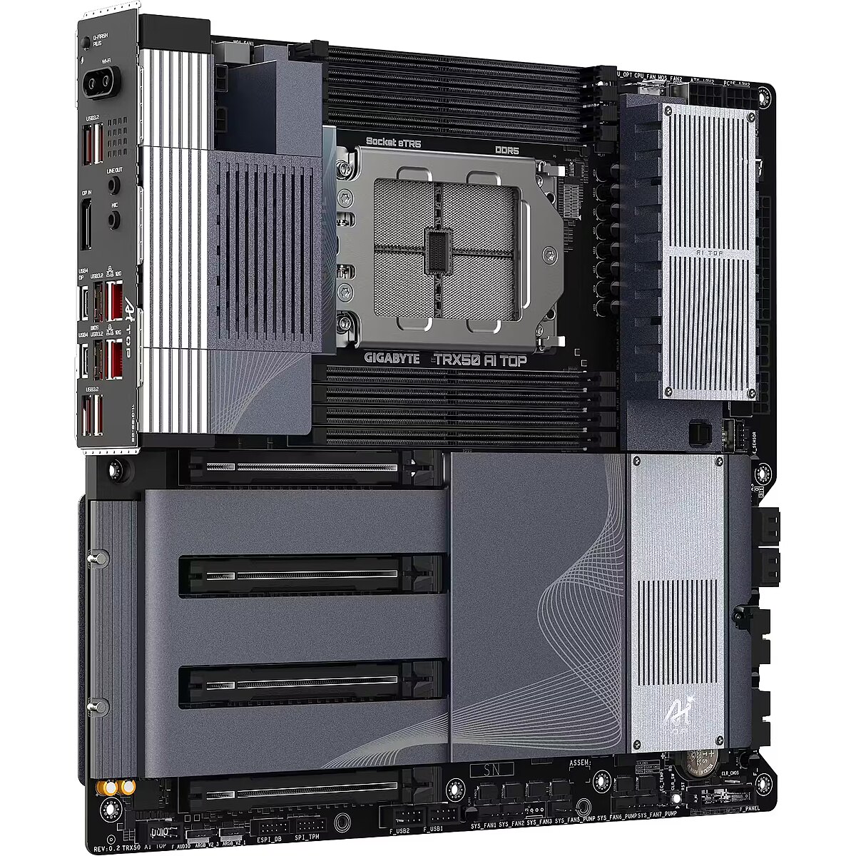 ShortSummaryDescription - GIGABYTE TRX50 AI TOP-2B Motherboard - AMD Ryzen Threadripper PRO 7000 CPUs, 16+8+4 Phases Digital VRM, up to 5200 MHz DDR5, 4xPCIe 5.0 M.2, Wi-Fi 7, 10 GbE LAN, USB 4, AMD, Socket sTR5, AMD Ryzen Threadripper 7000 Series, AMD Ryzen Threadripper PRO 7000 WX-Series, Socket sTR5, DDR5-SDRAM, 2 TB