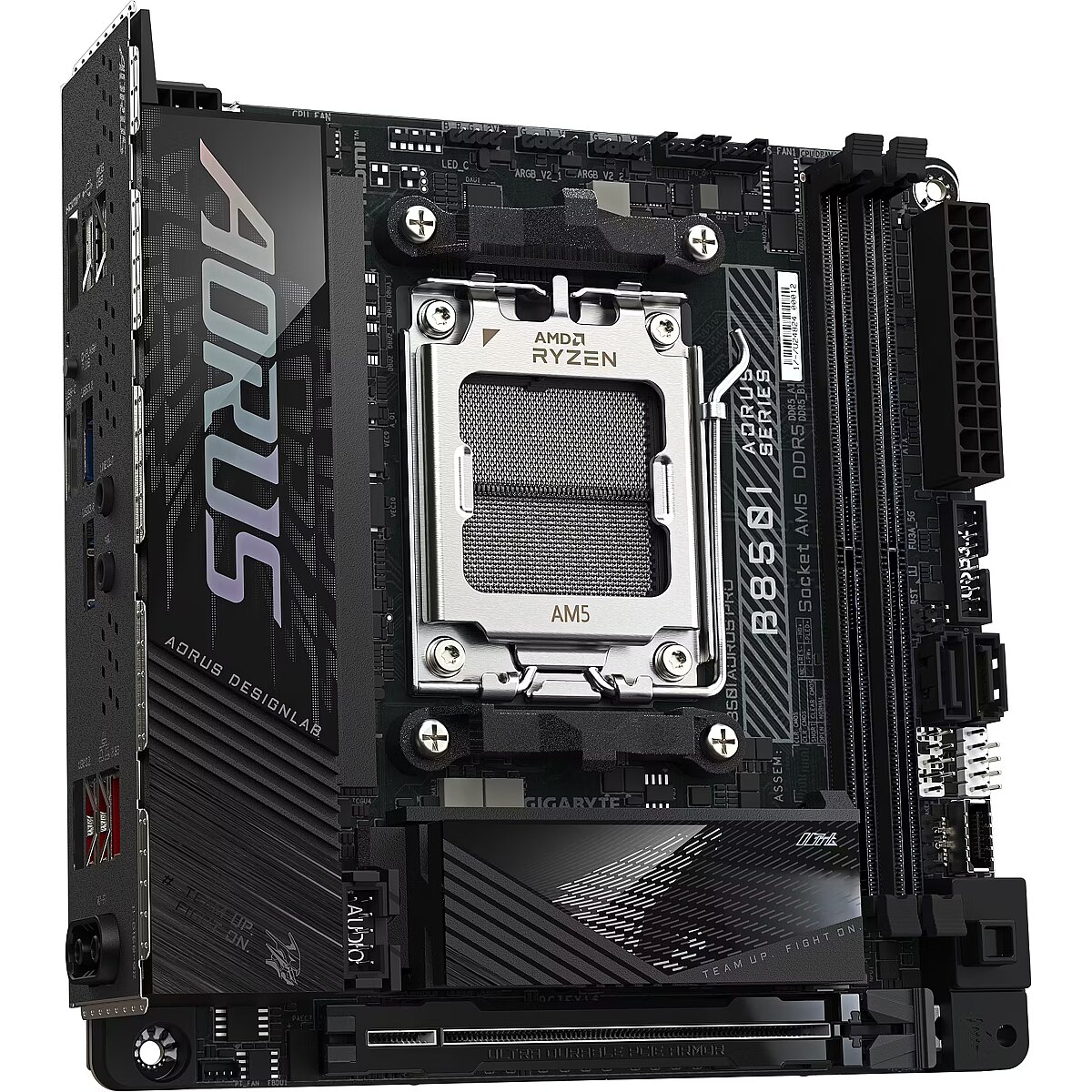 Summary - GIGABYTE B850I AORUS PRO Motherboard - AMD Ryzen 9000 Series CPUs, 8+2+1 Phases Digital VRM, up to 8400MHz DDR5 (OC), 1xPCIe 5.0 + 1xPCIe 4.0 M.2, 2.5LAN, WIFI 7, USB 3.2 Gen 2. Processor manufacturer: AMD, Processor socket: Socket AM5, Compatible processor series: AMD Ryzen 7000 Series, AMD Ryzen 8000 Series, AMD Ryzen 9000 Series. Supported memory types: DDR5-SDRAM, Maximum internal memory: 128 GB, Memory slots type: DIMM. Supported storage drive interfaces: M.2, SATA III, Supported storage drive types: HDD & SSD, RAID levels: 0, 1, 10. Maximum resolution: 4096 x 2160 pixels. Ethernet interface type: Gigabit Ethernet, Top Wi-Fi standard: Wi-Fi 7 (802.11be), Wi-Fi standards: 802.11a, 802.11b, 802.11g, Wi-Fi 4 (802.11n), Wi-Fi 5 (802.11ac), Wi-Fi 6 (802.11ax), Wi-Fi 6E...