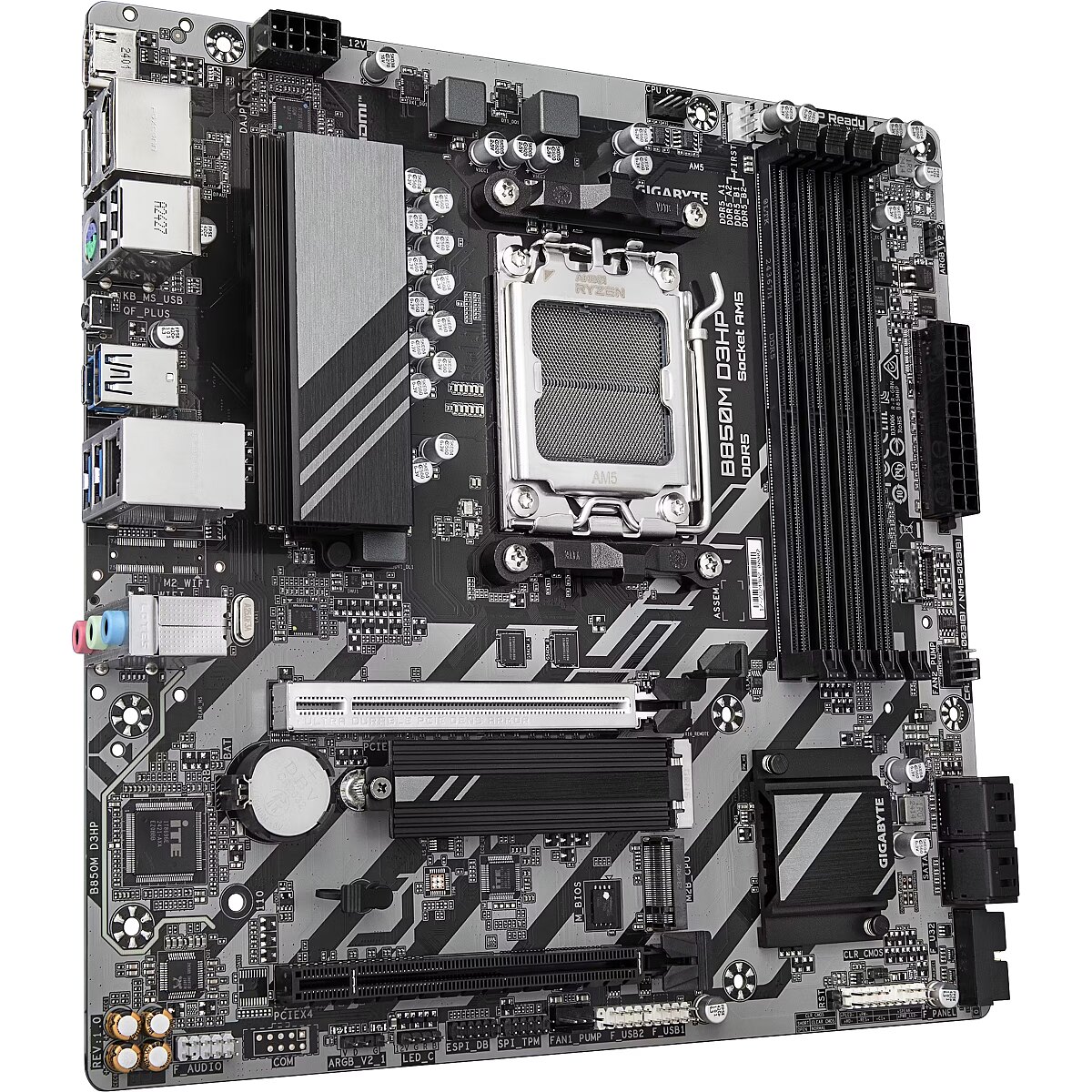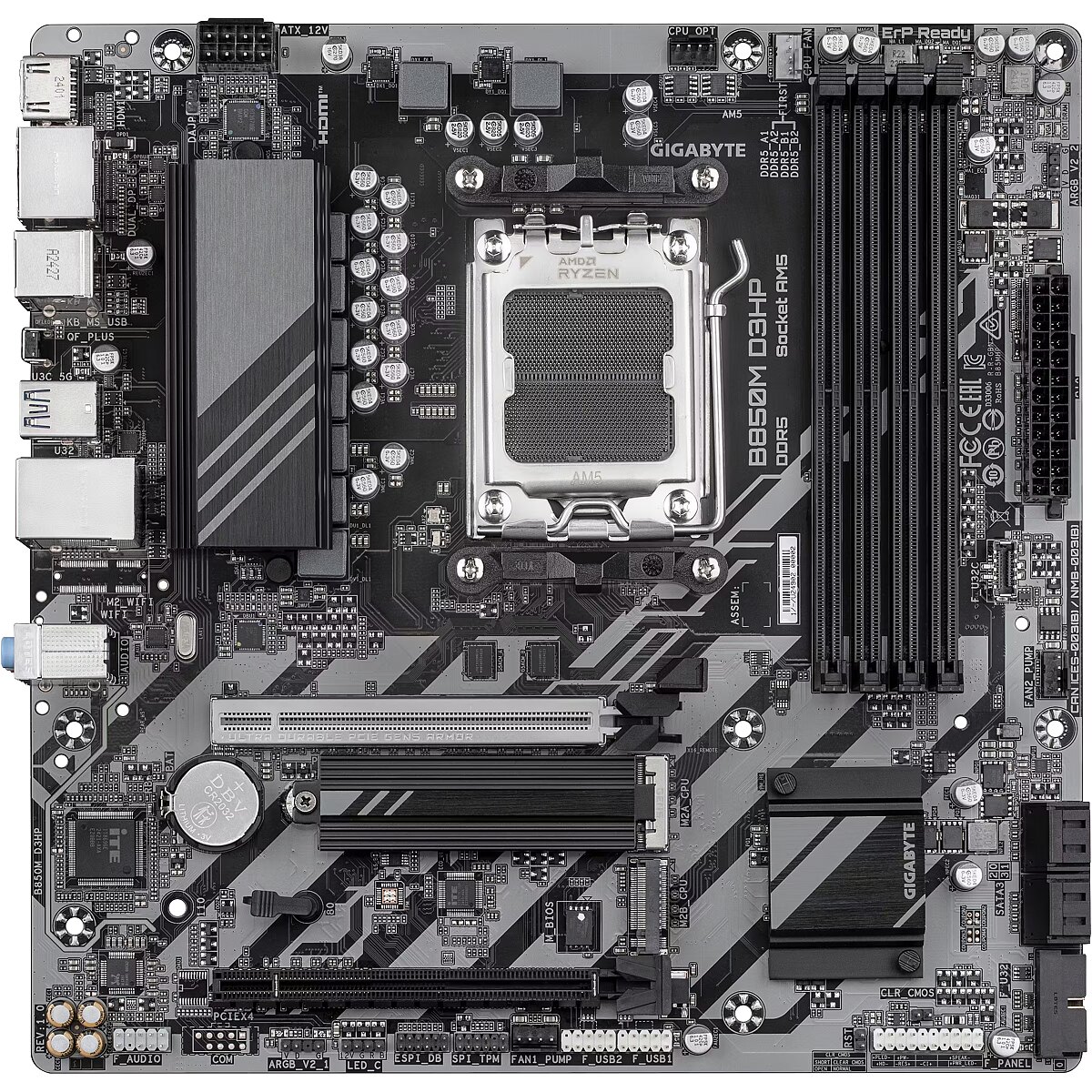 ShortSummaryDescription - GIGABYTE B850M D3HP Motherboard - AMD Ryzen 9000 Series CPUs, 5+2+2 Phases Digital VRM, up to 8200MHz DDR5 (OC), 1xPCIe 5.0 + 1xPCIe 4.0 M.2, GbE LAN, USB 3.2 Gen 2, AMD, Socket AM5, AMD Ryzen 7000 Series, AMD Ryzen 8000 Series, AMD Ryzen 9000 Series, Socket AM5, DDR5-SDRAM, 256 GB