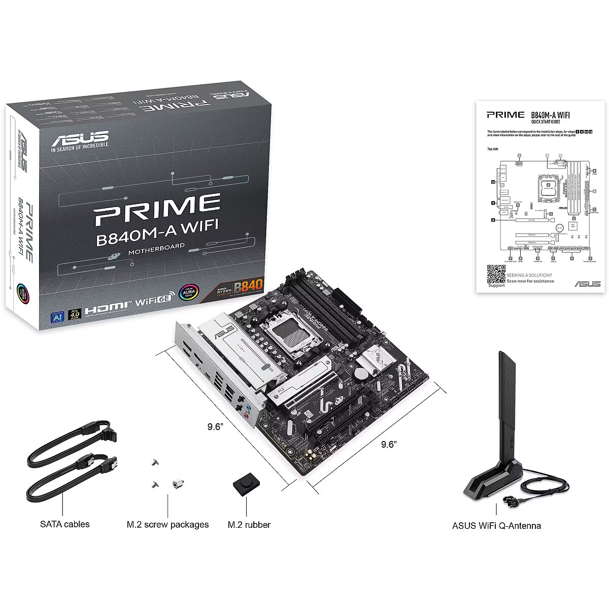 ShortSummaryDescription - ASUS PRIME B840M-A WIFI, AMD, Socket AM5, AMD Ryzen 7000 Series, AMD Ryzen 8000 Series, AMD Ryzen 9000 Series, Socket AM5, DDR5-SDRAM, 192 GB