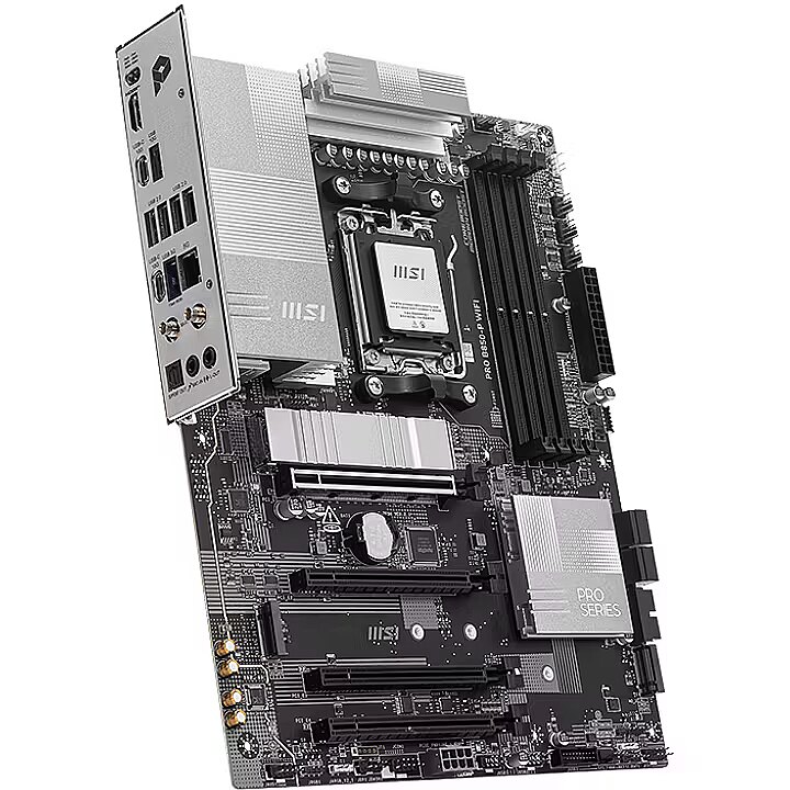 Description - PRO B850-P WIFI offers a simple design with a harmonious silver color scheme that perfectly matches both white and black PC builds. It is engineered with many exclusive features of MSI, a true Wi-Fi 7 with EZ Antenna, 5G LAN, PCIe 5.0 M.2 with EZ M.2 Shield Frozr II, and Supplemental PCIe Power, ready for the AMD Ryzen™ 9000 series processors.