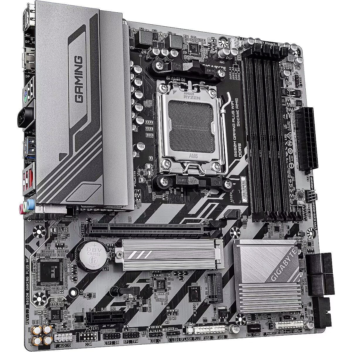 ShortSummaryDescription - GIGABYTE B650M GAMING PLUS WIFI Motherboard - AMD Ryzen 9000 CPUs, 5+2+2 Phases VRM, up to 8000MHz DDR5, 2xPCIe 4.0 M.2, 2.5GbE LAN, WIFI 6E, USB 3.2 Gen 1, AMD, Socket AM5, AMD Ryzen 7000 Series, AMD Ryzen 8000 Series, AMD Ryzen 9000 Series, Socket AM5, DDR5-SDRAM, 256 GB