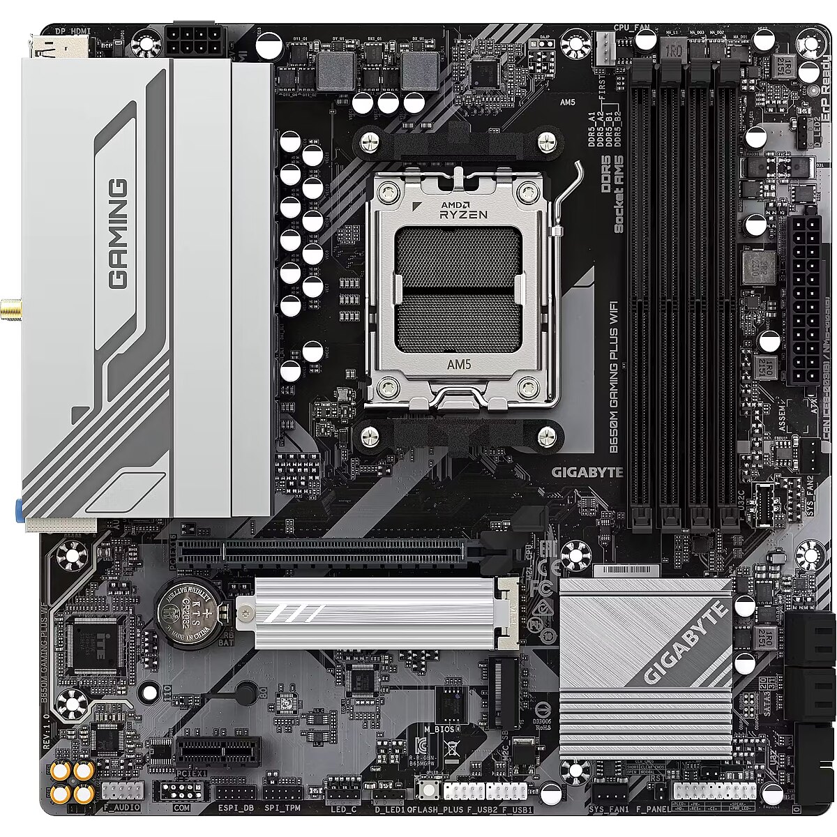 Description - GIGABYTE B650M GAMING PLUS WIFI (rev. 1.1) AMD Socket AM5 Supports AMD Ryzen 7000 Series/ Ryzen 8000/ Ryzen 9000 Series Processors Unparalleled Performance 5+2+2 Phases Digital VRM Solution Dual Channel DDR5 4*SMD DIMMs with AMD EXPO™ & Intel® XMP Memory Module Support SuperSpeed Storage PCIe 4.0 x4 M.2 Connector EZ-Latch PCIe x16 Slot with Quick Release Design Fast Networks Wi-Fi 802.11ax & 2.5GbE LAN Extended Connectivity 2*DP, HDMI Smart Fan 6 Features Multiple Temperature Sensors, Hybrid Fan Headers with FAN STOP Q-Flash Plus Update BIOS Without Installing the CPU, Memory and Graphics Card
