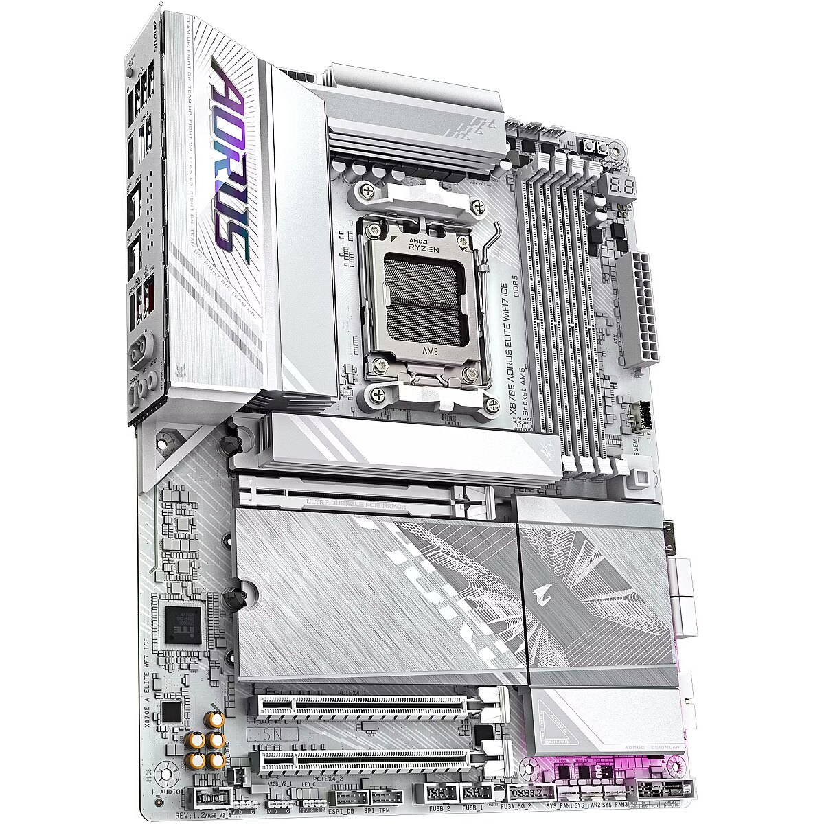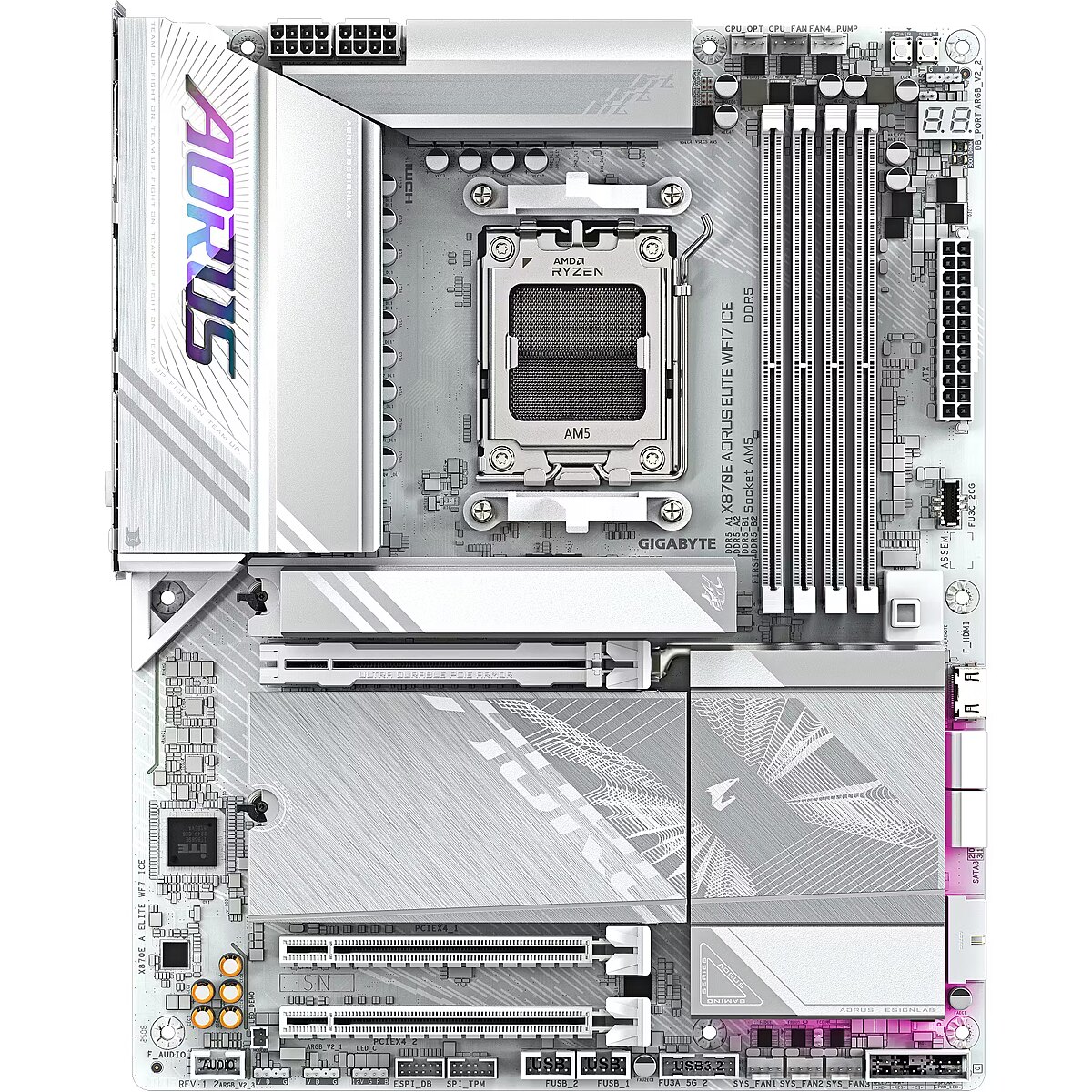 ShortSummaryDescription - GIGABYTE X870E AORUS ELITE WIFI7 ICE Motherboard - Supports AMD Ryzen 9000 CPUs, 16+2+2 Phases Digital VRM, up to 8200Hz DDR5 (OC), 3xPCIe 5.0 + 1xPCIe 4.0, Wi-Fi 7, 2.5GbE LAN, USB 4, AMD, Socket AM5, AMD Ryzen 7000 Series, AMD Ryzen 8000 Series, AMD Ryzen 9000 Series, Socket AM5, DDR5-SDRAM, 256 GB
