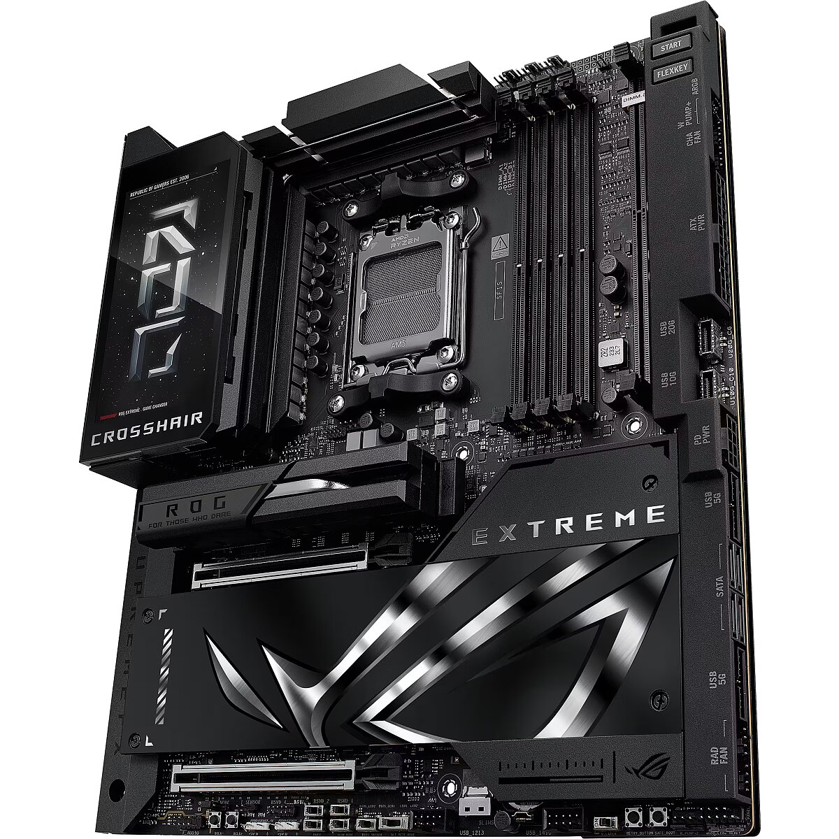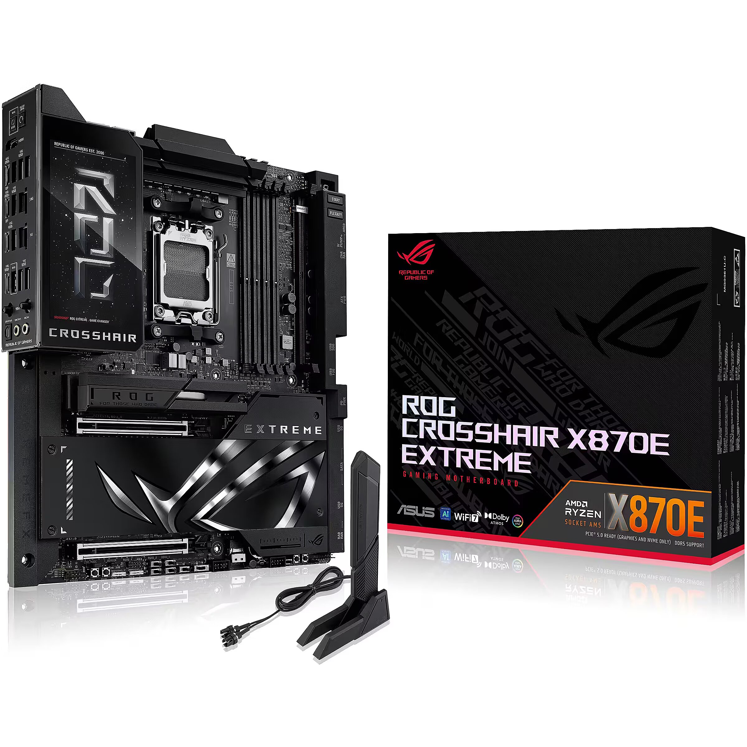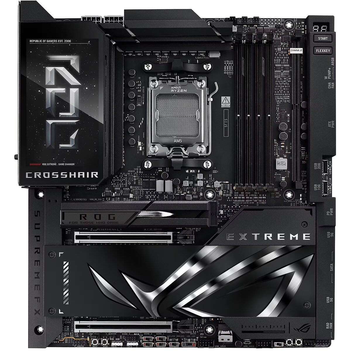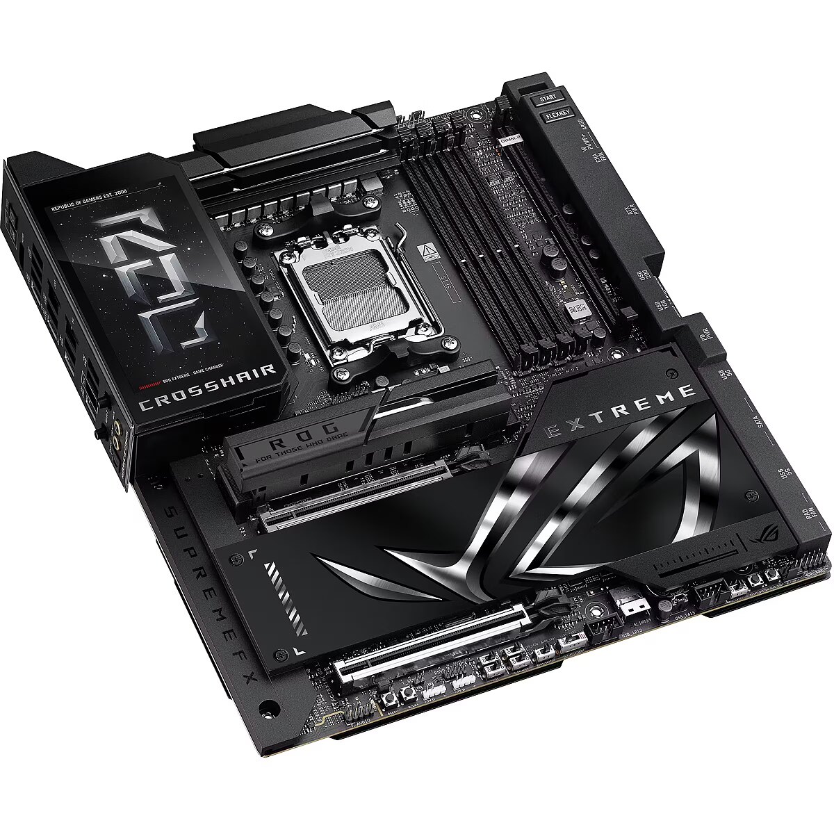 ShortSummaryDescription - ASUS ROG CROSSHAIR X870E EXTREME, AMD, Socket AM5, AMD Ryzen 7000 Series, AMD Ryzen 8000 Series, AMD Ryzen 9000 Series, Socket AM5, DDR5-SDRAM, 256 GB