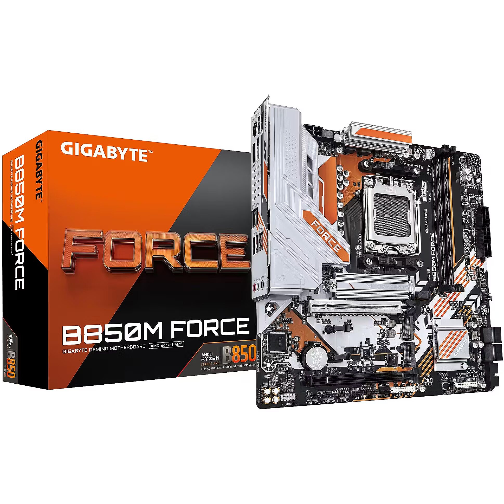 ShortSummaryDescription - GIGABYTE B850M FORCE Motherboard - AMD Ryzen 9000 Series CPUs, 8+2+2 Phases Digital VRM, up to 9600MHz DDR5 (OC), 1xPCIe 5.0 + 2xPCIe 4.0 M.2, 2.5 GbE LAN, USB 3.2 Gen 2, AMD, Socket AM5, AMD Ryzen 7000 Series, AMD Ryzen 8000 Series, AMD Ryzen 9000 Series, Socket AM5, DDR5-SDRAM, 128 GB