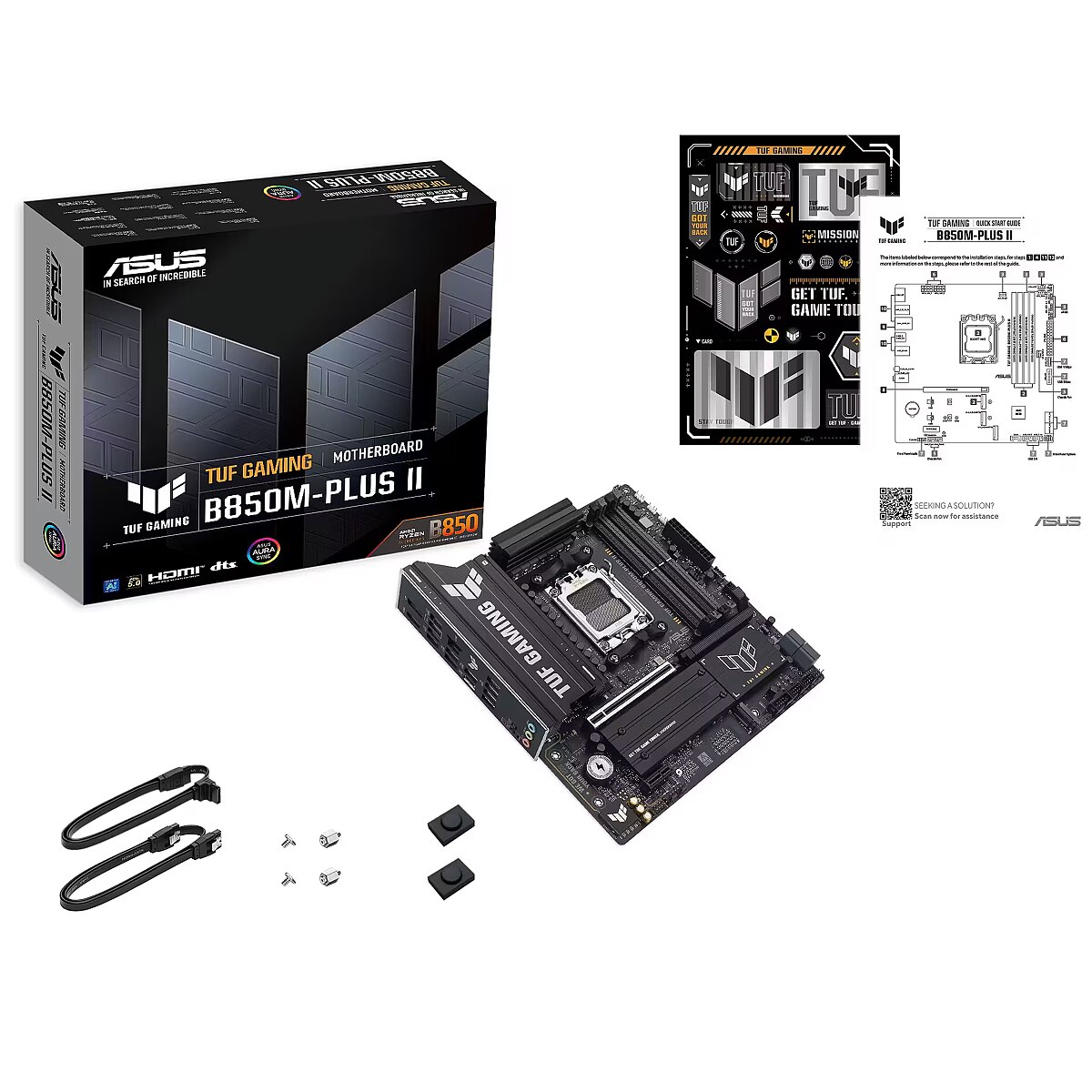 ShortSummaryDescription - ASUS TUF GAMING B850M-PLUS II, AMD, Socket AM5, AMD Ryzen 7000 Series, AMD Ryzen 8000 Series, AMD Ryzen 9000 Series, Socket AM5, DDR5-SDRAM, 256 GB