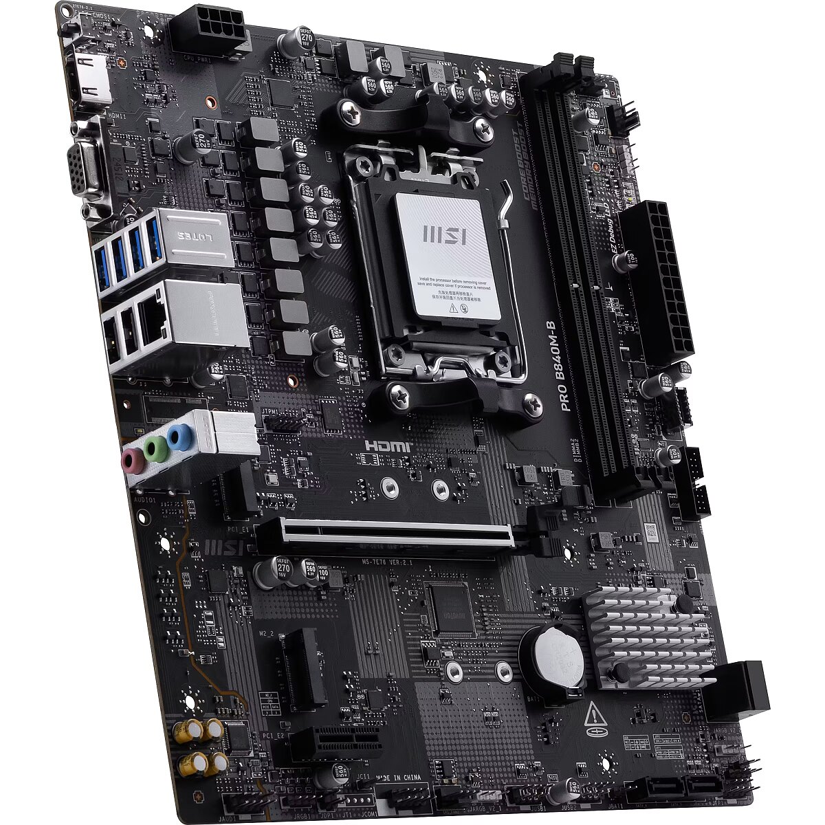 ShortSummaryDescription - MSI PRO B840M-B, AMD, Socket AM5, AMD Ryzen 7000 Series, AMD Ryzen 8000 Series, AMD Ryzen 9000 Series, Socket AM5, DDR5-SDRAM, 128 GB