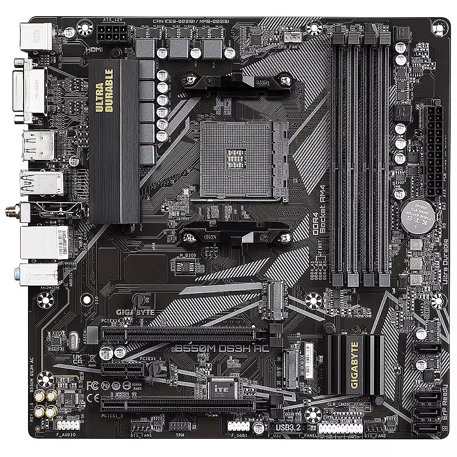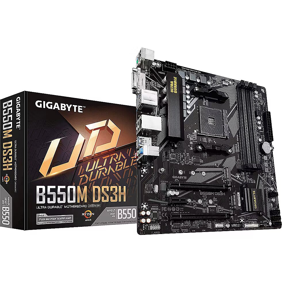 Description - GIGABYTE B550M DS3H 1.7 AMD B550 Ultra Durable Motherboard with Pure Digital VRM Solution, PCIe 4.0 x16 Slot, Dual PCIe 4.0/3.0 M.2 Connectors, Realtek GbE LAN, Smart Fan 5 with FAN STOP, RGB FUSION 2.0, Q-Flash Plus + Supports AMD Ryzen 5000 Series/ Ryzen 5000 G-Series/ Ryzen 4000 G-Series and Ryzen 3000 Series Processors + Dual Channel ECC/ Non-ECC Unbuffered DDR4, 4 DIMMs + 5+3 Phases Pure Digital VRM Solution with Low RDS(on) MOSFETs + Ultra Durable PCIe 4.0 Ready x16 Slot + Dual Ultra-Fast NVMe PCIe 4.0/3.0 M.2 Connectors + High Quality Audio Capacitors and Audio Noise Guard for Ultimate Audio Quality + Realtek GbE LAN with Bandwidth Management + Rear HDMI & DVI Support + RGB FUSION 2.0 Supports Addressable LED & RGB LED Strips + Smart Fan 5 Features Multiple Temperature Sensors , Hybrid Fan Headers with FAN STOP + Q-Flash Plus Update BIOS without Installing the CPU, Memory and Graphics Card + Anti-Sulfur Resistors Design