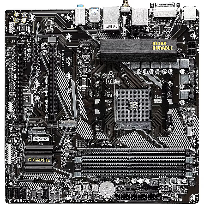 Description - GIGABYTE B550M DS3H AC 1.7 AMD B550 Ultra Durable Motherboard with Digital VRM Solution, PCIe 4.0 x16 Slot, Dual PCIe 4.0/3.0 M.2 Connectors, Dual Band 802.11ac WIFI, Realtek GbE LAN, Smart Fan 5 with FAN STOP + Supports AMD Ryzen 5000 Series/ Ryzen 5000 G-Series/ Ryzen 4000 G-Series and Ryzen 3000 Series Processors + Dual Channel ECC/ Non-ECC Unbuffered DDR4, 4 DIMMs 5+3 Phases Pure Digital VRM Solution with Low RDS(on) MOSFETs + Ultra Durable PCIe 4.0 Ready x16 Slot + Dual Ultra-Fast NVMe PCIe 4.0/3.0 M.2 Connectors + Onboard Dual Band 802.11ac Wireless & BT Support with WIFI Antenna + High Quality Audio Capacitors and Audio Noise Guard for Ultimate Audio Quality + Realtek GbE LAN with Bandwidth Management + Rear DisplayPort, HDMI & DVI for Multi-display Support + Smart Fan 5 Features Multiple Temperature Sensors , Hybrid Fan Headers with FAN STOP + Anti-Sulfur Resistors Design