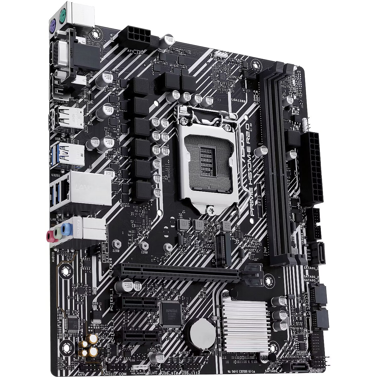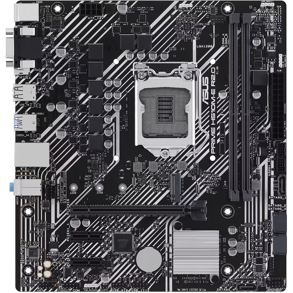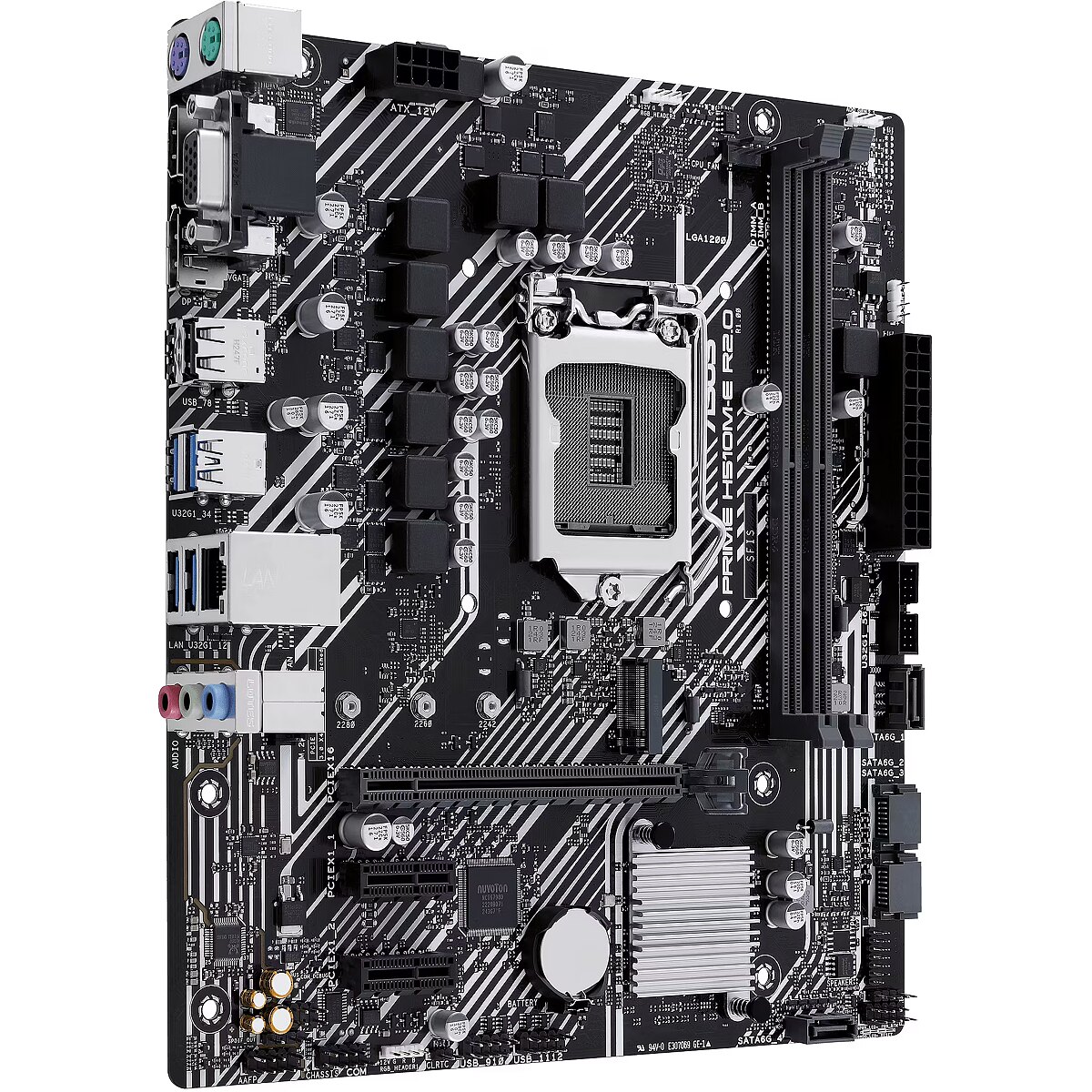 LongSummaryDescription - ASUS PRIME H510M-E R2.0. Processor manufacturer: Intel, Processor socket: LGA 1200 (Socket H5), Compatible processor series: Intel® Celeron®, Intel® Core™ i3, Intel® Core™ i5, Intel® Core™ i7, Intel® Core™ i9,.... Supported memory types: DDR4-SDRAM, Maximum internal memory: 64 GB, Memory slots type: DIMM. Supported storage drive interfaces: M.2, SATA III, Supported storage drive types: HDD & SSD. Ethernet interface type: Gigabit Ethernet. Component for: PC, Motherboard form factor: micro ATX, Motherboard chipset family: Intel
