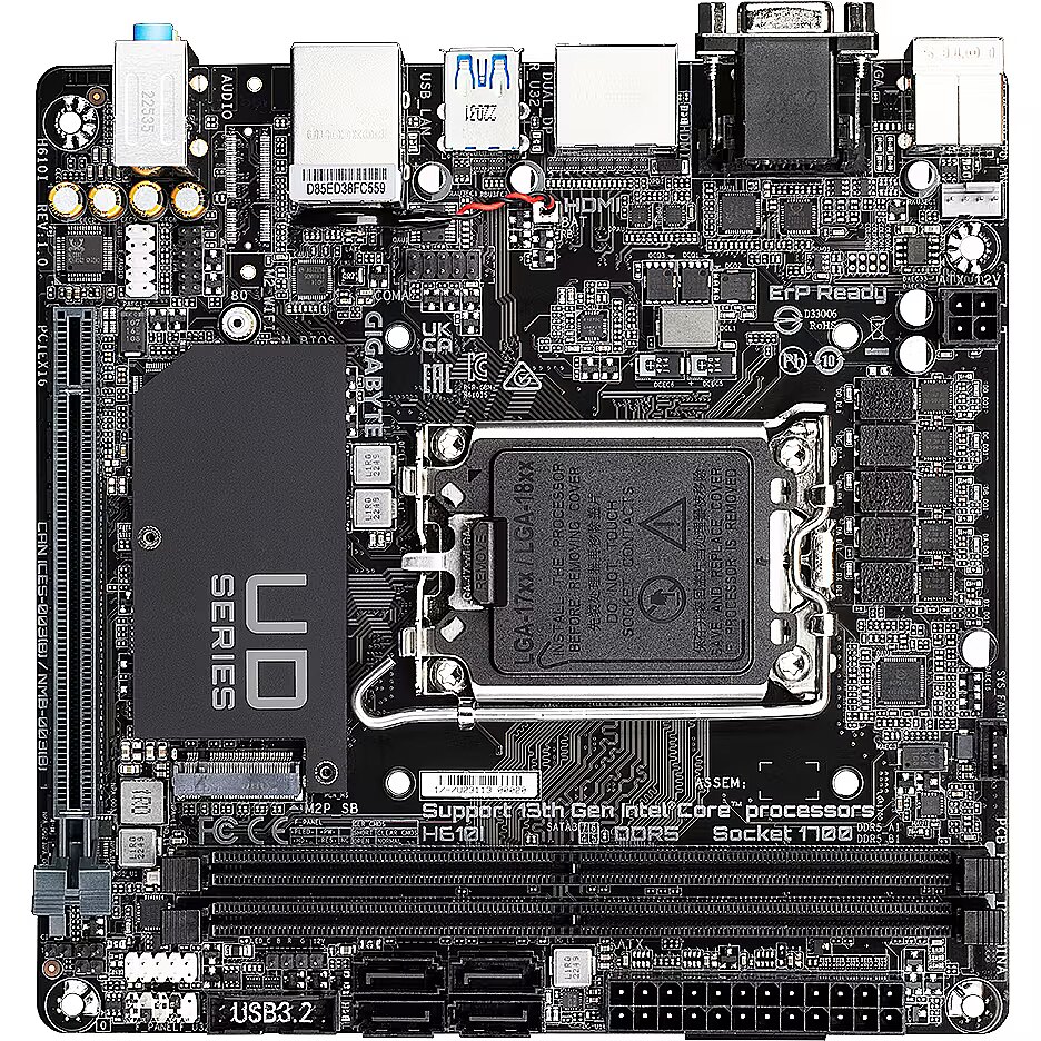 ShortSummaryDescription - GIGABYTE H610I Motherboard - Supports Intel Core 14th CPUs, 4+1+1 Hybrid Digital VRM, up to 5600MHz DDR5, 1xPCIe 3.0 M.2, GbE LAN, USB 3.2 Gen 1, Intel, LGA 1700, Intel® Celeron®, Intel® Core™ i3, Intel® Core™ i5, Intel® Core™ i7, Intel® Core™ i9, Intel Pentium G, LGA 1700, 64 GB, DDR5-SDRAM