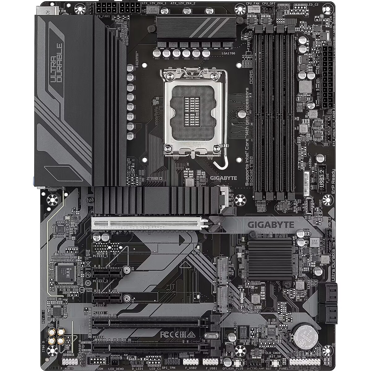 ShortSummaryDescription - GIGABYTE Z790 D Motherboard - Supports Intel Core 14th Gen CPUs, 12+1+1 Phases Digital VRM, up to 7600MHz DDR5 (OC), 3xPCIe 4.0 M.2, 2.5GbE LAN, USB 3.2 Gen 2, Intel, LGA 1700, Intel® Celeron®, Intel® Core™ i3, Intel® Core™ i5, Intel® Core™ i7, Intel® Core™ i9,..., LGA 1700, 192 GB, DDR5-SDRAM