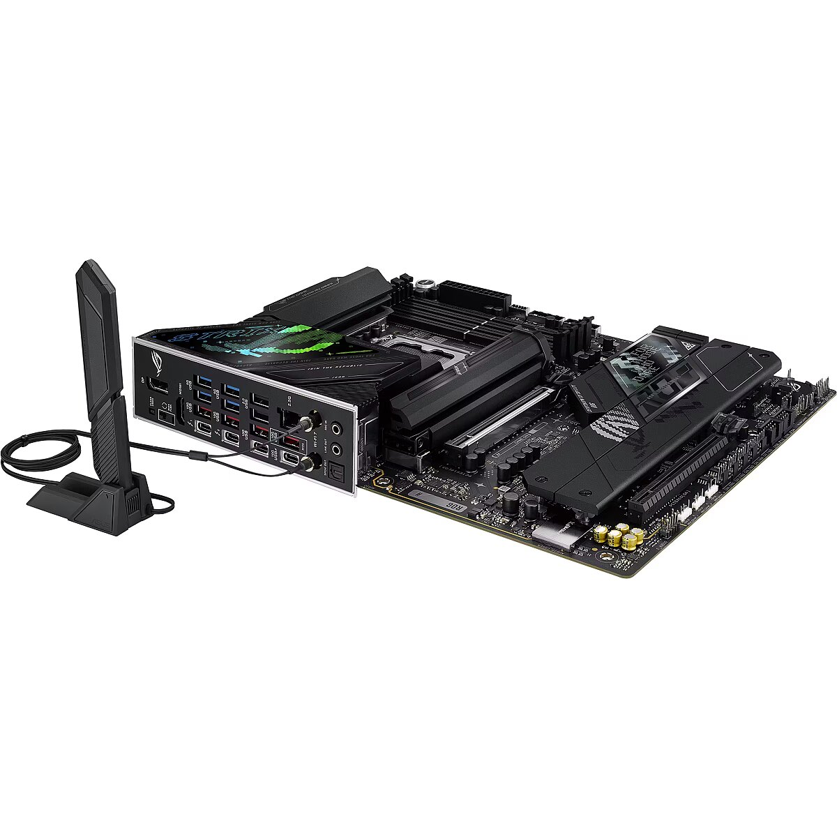 Specifications: Form factor: ATX Chipset: Intel Z890 CPU support: Intel 14th Gen Memory slots: 4 × DDR5, up to 128GB Graphics support: 3 × PCIe 5.0 x16 Storage: 5 × M.2, 6 × SATA 6Gb/s Networking: 2.5 Gb Ethernet, Wi-Fi 6E Audio: ROG SupremeFX 7.1 channel USB: 2 × USB-C, 8 × USB 3.2, 4 × USB 2.0 Features: reinforced PCIe slots, Advanced Cooling, Aura Sync RGB, ROG ecosystem