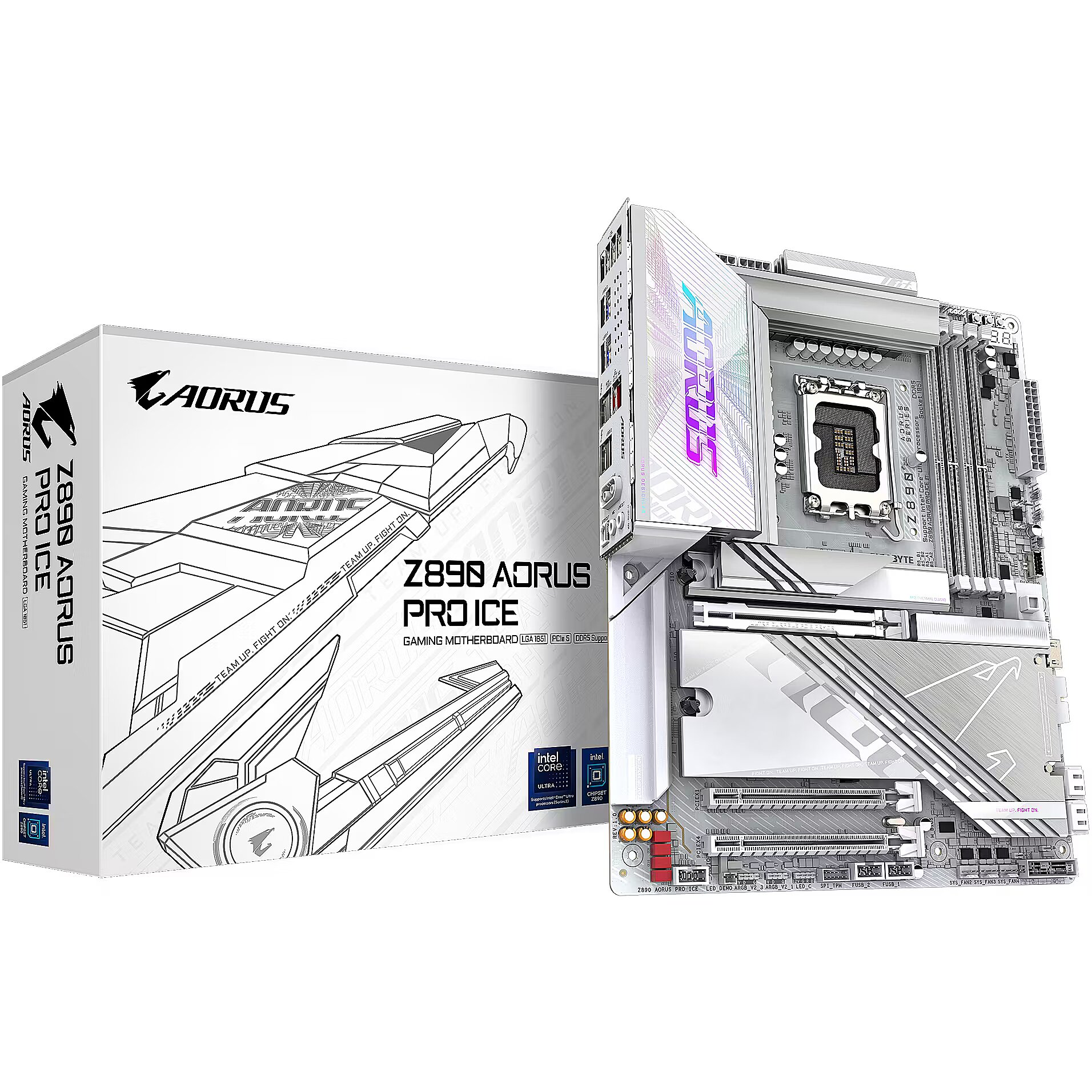 ProductName - Z890 AORUS PRO ICE Motherboard - Supports Intel Core Ultra (Series 2) CPUs, 16+1+2 phases VRM, up to 9500MHz DDR5 (OC), 1xPCIe 5.0 + 4xPCIe 4.0, Wi-Fi 7, 5GbE LAN, Thunderbolt 4