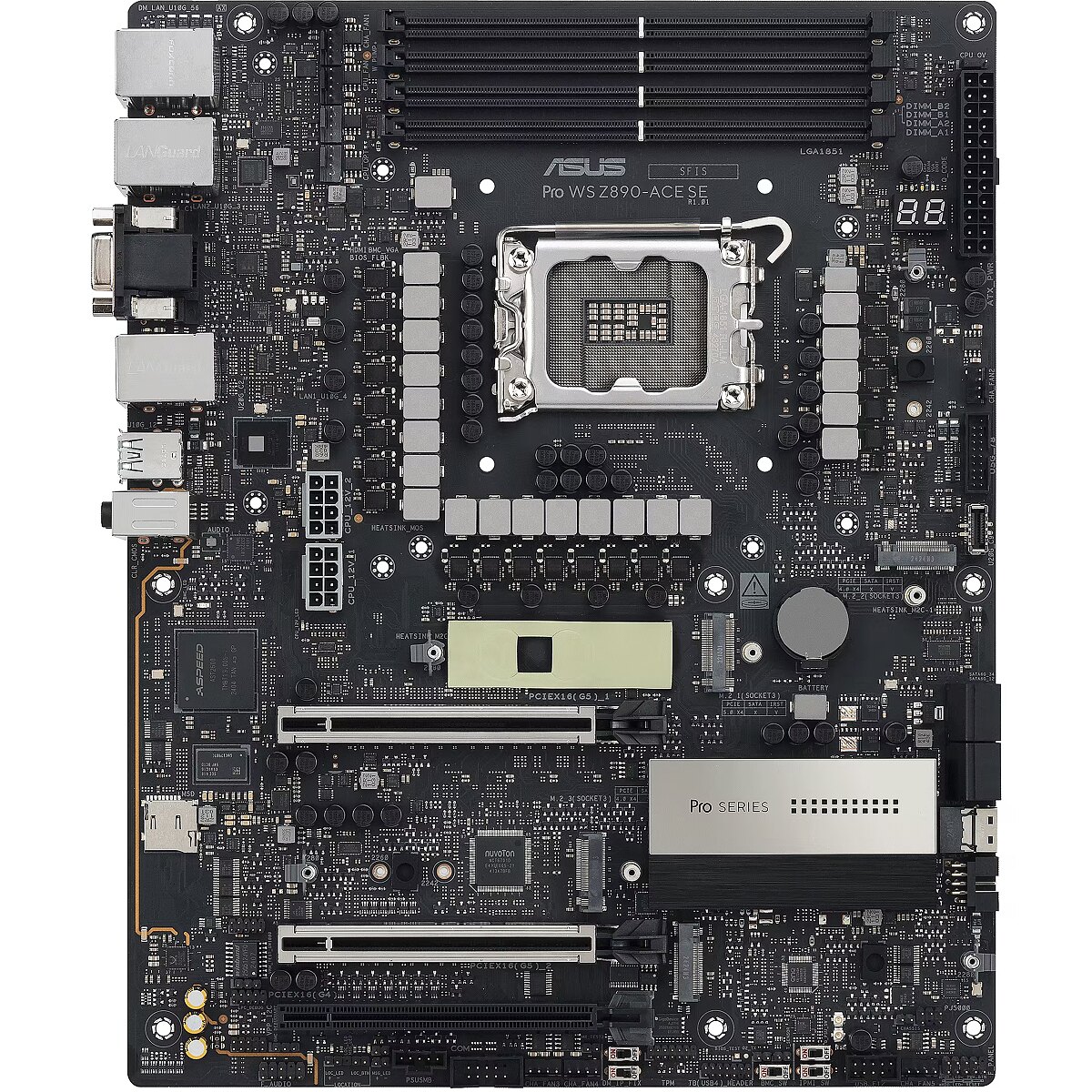 LongSummaryDescription - ASUS PRO WS Z890-ACE SE. Processor manufacturer: Intel, Processor socket: LGA 1851 (Socket V1), Compatible processor series: Intel Core Ultra (Series 2). Supported memory types: DDR5-SDRAM, Maximum internal memory: 256 GB, Memory slots type: DIMM. Supported storage drive interfaces: M.2, PCI Express 5.0, SATA III, Supported storage drive types: HDD & SSD, RAID levels: 0, 1, 5, 10. Ethernet interface type: 2.5 Gigabit Ethernet, 10 Gigabit Ethernet, Gigabit Ethernet. Component for: PC, Motherboard form factor: ATX, Motherboard chipset family: Intel