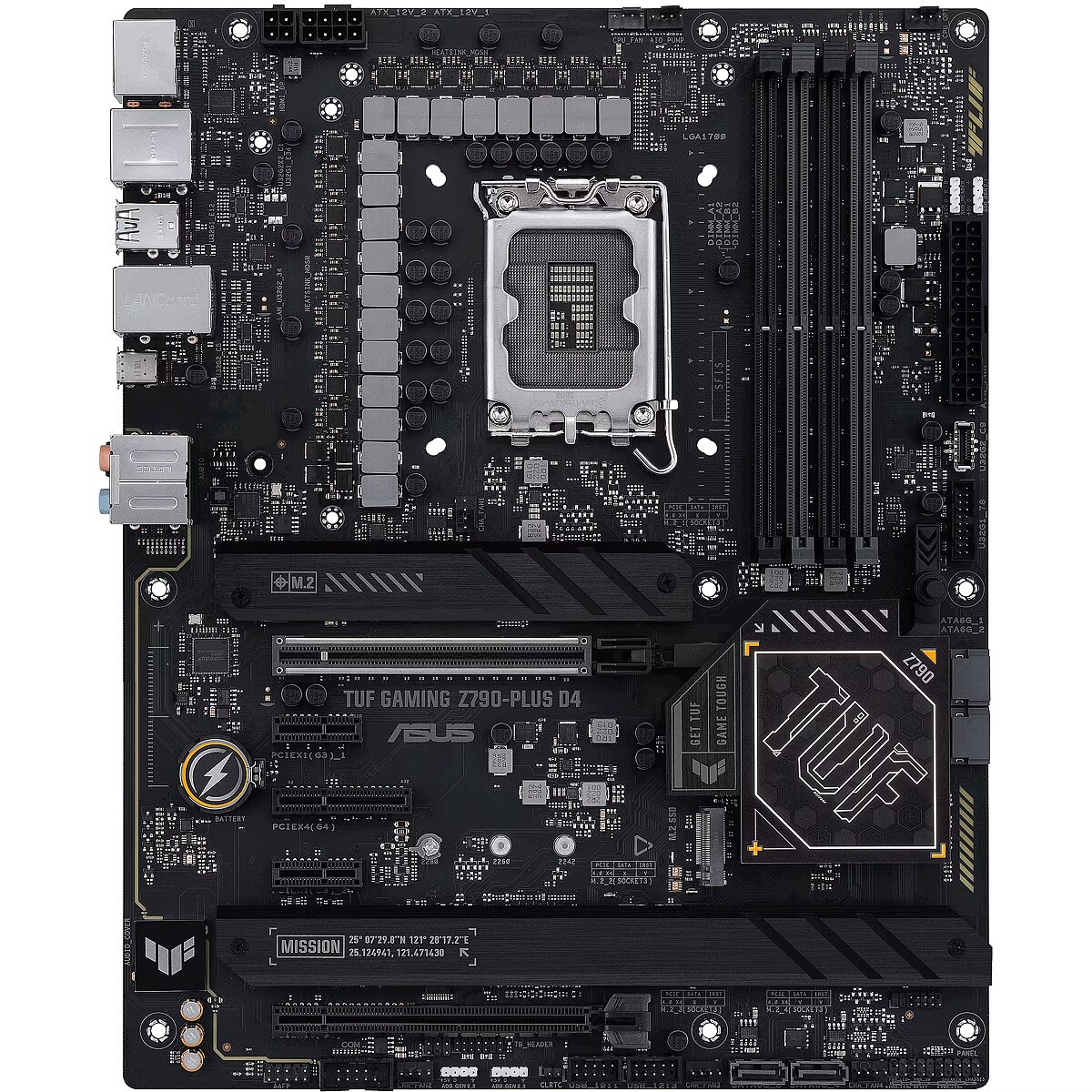 ShortSummaryDescription - ASUS TUF GAMING Z790-PLUS D4, Intel, LGA 1700, Intel® Celeron®, Intel® Core™ i3, Intel® Core™ i5, Intel® Core™ i7, Intel® Core™ i9,..., LGA 1700, DDR4-SDRAM, 128 GB