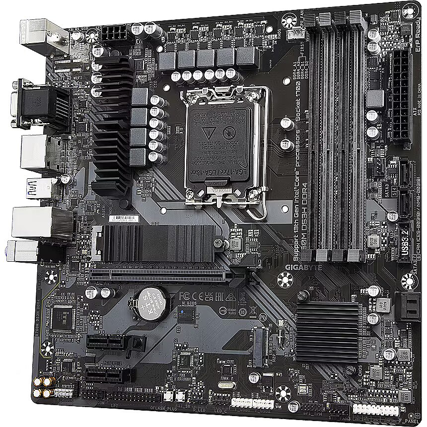 Summary - GIGABYTE B760M DS3H DDR4 Motherboard - Supports Intel Core 14th Gen CPUs, 6+2+1 Phases Digital VRM, up to 5333MHz DDR4 (OC), 2xPCIe 4.0 M.2, 2.5GbE LAN, USB 3.2 Gen2. Processor manufacturer: Intel, Processor socket: LGA 1700, Compatible processor series: Intel® Celeron®, Intel® Core™ i3, Intel® Core™ i5, Intel® Core™ i7, Intel® Core™ i9,.... Supported memory types: DDR4-SDRAM, Maximum internal memory: 128 GB, Memory slots type: DIMM. Supported storage drive interfaces: M.2, SATA III, Supported storage drive types: HDD & SSD, RAID levels: 0, 1, 5, 10. Maximum resolution: 4096 x 2304 pixels. Ethernet interface type: 2.5 Gigabit Ethernet