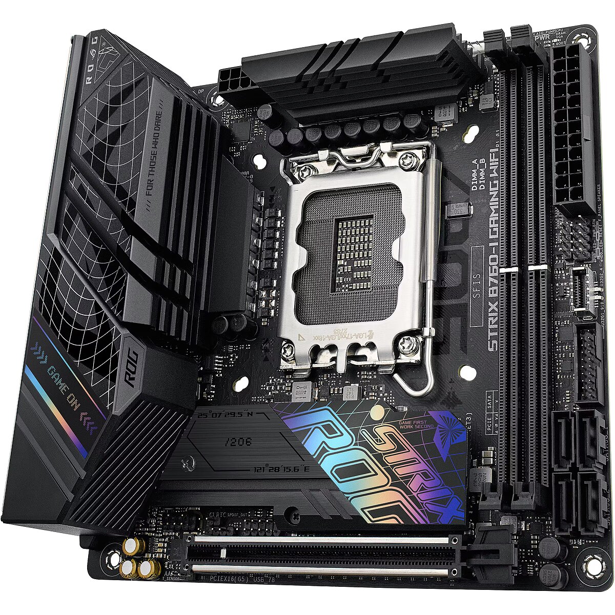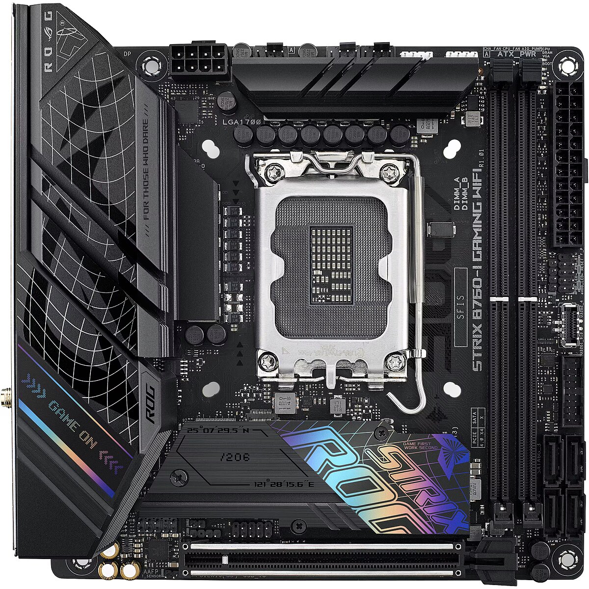 ShortSummaryDescription - ASUS ROG STRIX B760-I GAMING WIFI, Intel, LGA 1700, Intel® Celeron®, Intel® Core™ i3, Intel® Core™ i5, Intel® Core™ i7, Intel® Core™ i9,..., LGA 1700, DDR5-SDRAM, 64 GB