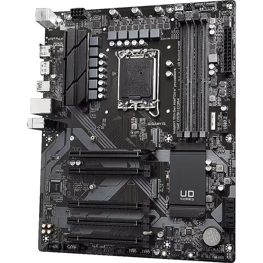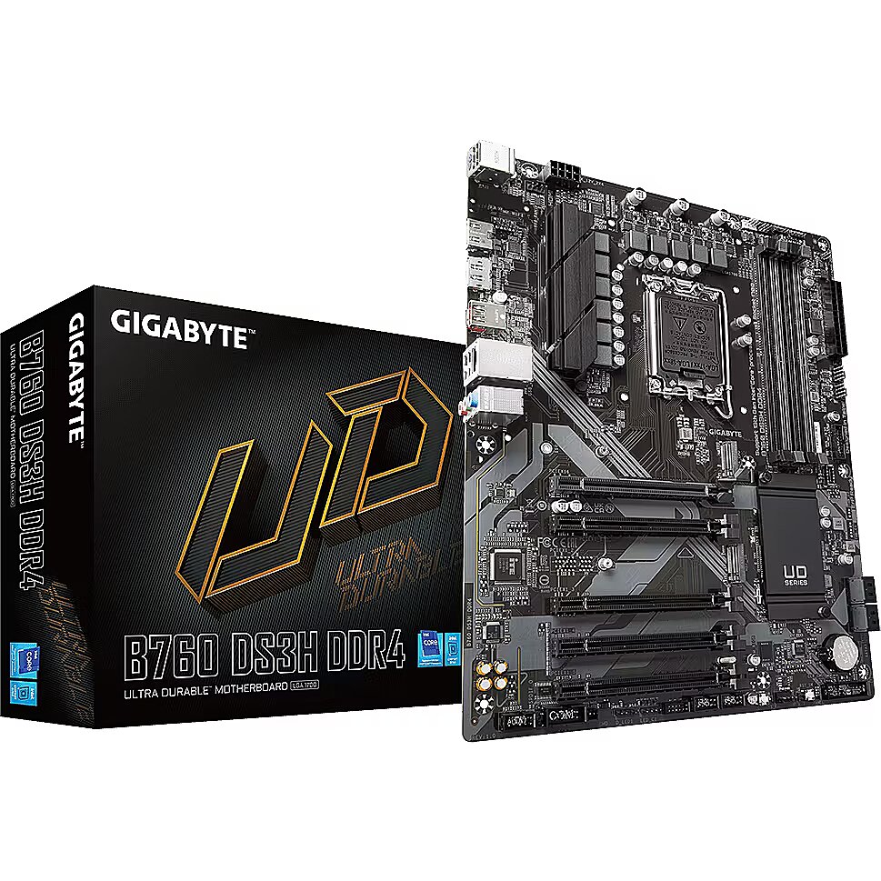 Summary - GIGABYTE B760 DS3H DDR4 Motherboard - Supports Intel Core 14th CPUs, 18+2+1 Phases Digital VRM, up to 5333MHz DDR4 (OC), 2xPCIe 4.0 M.2, GbE LAN, USB 3.2 Gen 2. Processor manufacturer: Intel, Processor socket: LGA 1700, Compatible processor series: Intel® Celeron®, Intel® Core™ i3, Intel® Core™ i5, Intel® Core™ i7, Intel® Core™ i9,.... Supported memory types: DDR4-SDRAM, Maximum internal memory: 128 GB, Memory slots type: DIMM. Supported storage drive interfaces: M.2, PCI Express 4.0, SATA III, Supported storage drive types: HDD & SSD, RAID levels: 0, 1, 5, 10. Maximum resolution: 4096 x 2304 pixels. USB connector type: USB Type-A, USB Type-C