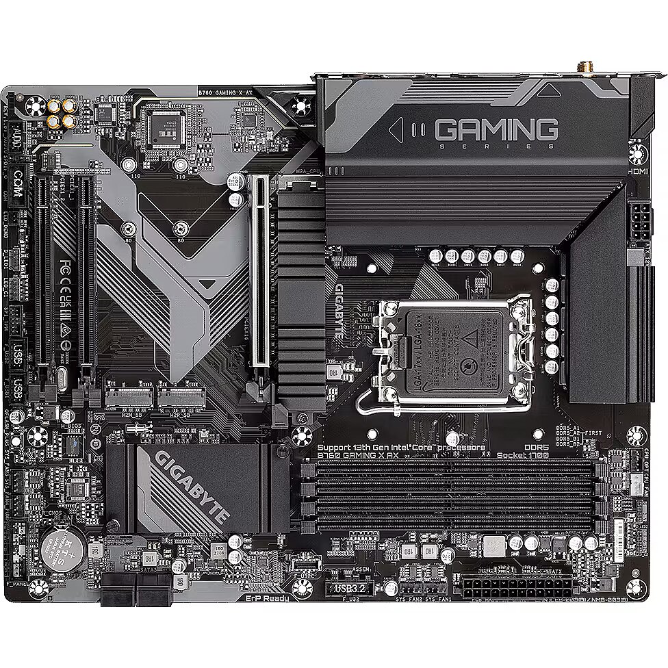 ShortSummaryDescription - GIGABYTE B760 GAMING X AX Motherboard - Supports Intel Core 14th Gen CPUs, 8+1+1 Phases Digital VRM, up to 7600MHz DDR5 (OC), 3xPCIe 4.0 M.2, Wi-Fi 6E, 2.5GbE LAN, USB 3.2 Gen 2, Intel, LGA 1700, Intel® Celeron®, Intel® Core™ i3, Intel® Core™ i5, Intel® Core™ i7, Intel® Core™ i9,..., LGA 1700, DDR5-SDRAM, 256 GB
