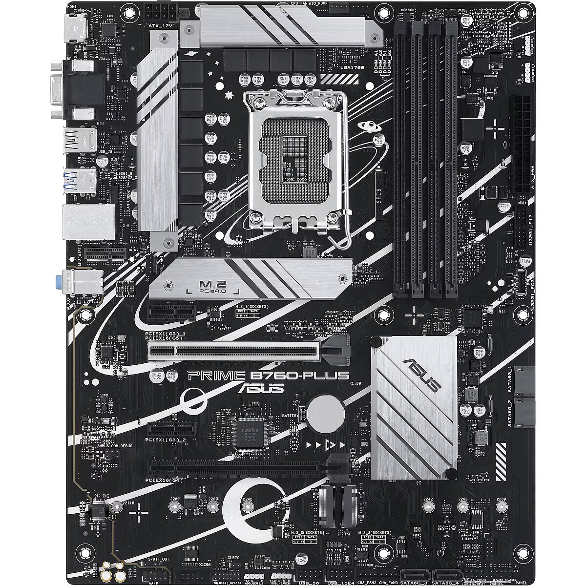 Description - ASUS Prime B760-PLUS, an Intel® B760 LGA 1700 ATX motherboard with PCIe 5.0, three PCIe 4.0 M.2 slots, DDR5, Realtek 2.5Gb Ethernet, DisplayPort, VGA, HDMI™, SATA 6 Gbps, USB 3.2 Gen 2x2 Type-C®, front USB 3.2 Gen 1 Type-C®, Thunderbolt™ (USB4®) support, Aura Sync Intel® LGA 1700 Socket: Ready for 13th and 12th Gen Intel® processors Ultrafast Connectivity: PCIe 5.0, three PCIe 4.0 M.2, Realtek 2.5Gb Ethernet, USB 3.2 Gen 2x2 Type-C®, front USB 3.2 Gen 1 Type-C® and Thunderbolt™ (USB4®) header support Comprehensive Cooling: VRM heatsinks, M.2 heatsink, PCH heatsink, hybrid fan headers and Fan Xpert 2+ Exclusive Memory Technology: ASUS Enhanced Memory Profile II and ASUS OptiMem II Aura Sync RGB Lighting: Onboard Addressable Gen 2 headers and Aura RGB header for RGB LED strips, easily synced with Aura Sync-capable hardware