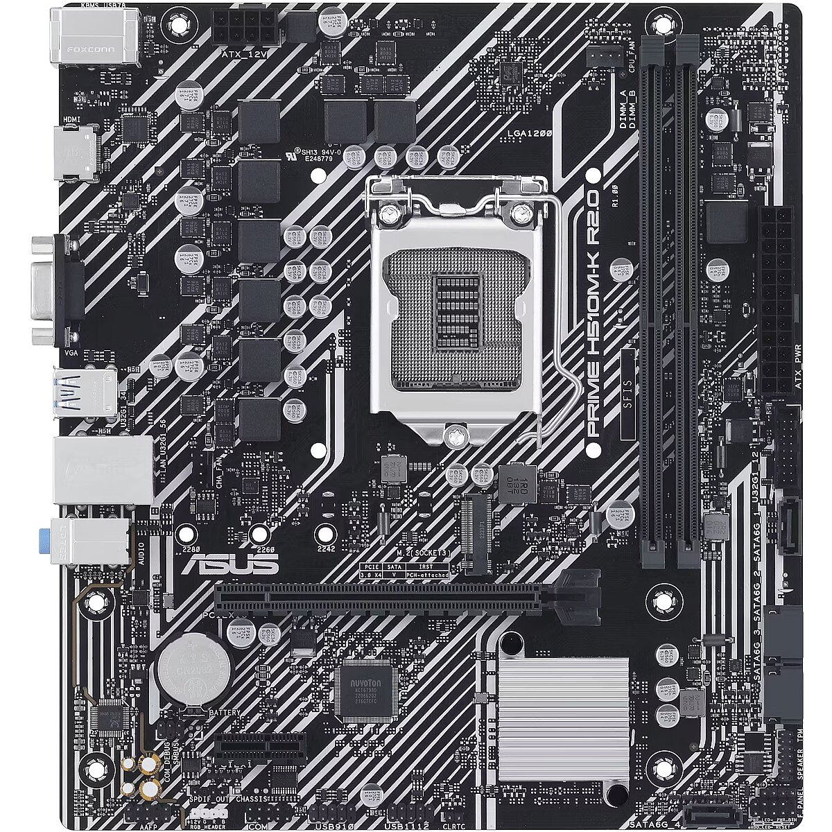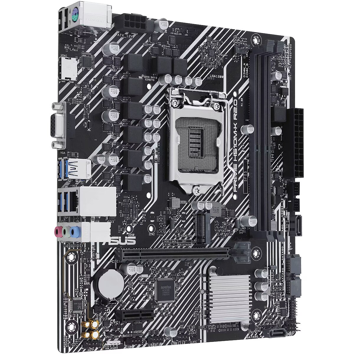 LongSummaryDescription - ASUS PRIME H510M-K R2.0. Processor manufacturer: Intel, Processor socket: LGA 1200 (Socket H5), Compatible processor series: Intel® Celeron®, Intel® Core™ i3, Intel® Core™ i5, Intel® Core™ i7, Intel® Core™ i9,.... Supported memory types: DDR4-SDRAM, Maximum internal memory: 64 GB, Memory slots type: DIMM. Supported storage drive interfaces: M.2, SATA III, Supported storage drive types: HDD & SSD. Ethernet interface type: Fast Ethernet, Gigabit Ethernet. Component for: PC, Motherboard form factor: micro ATX, Motherboard chipset family: Intel
