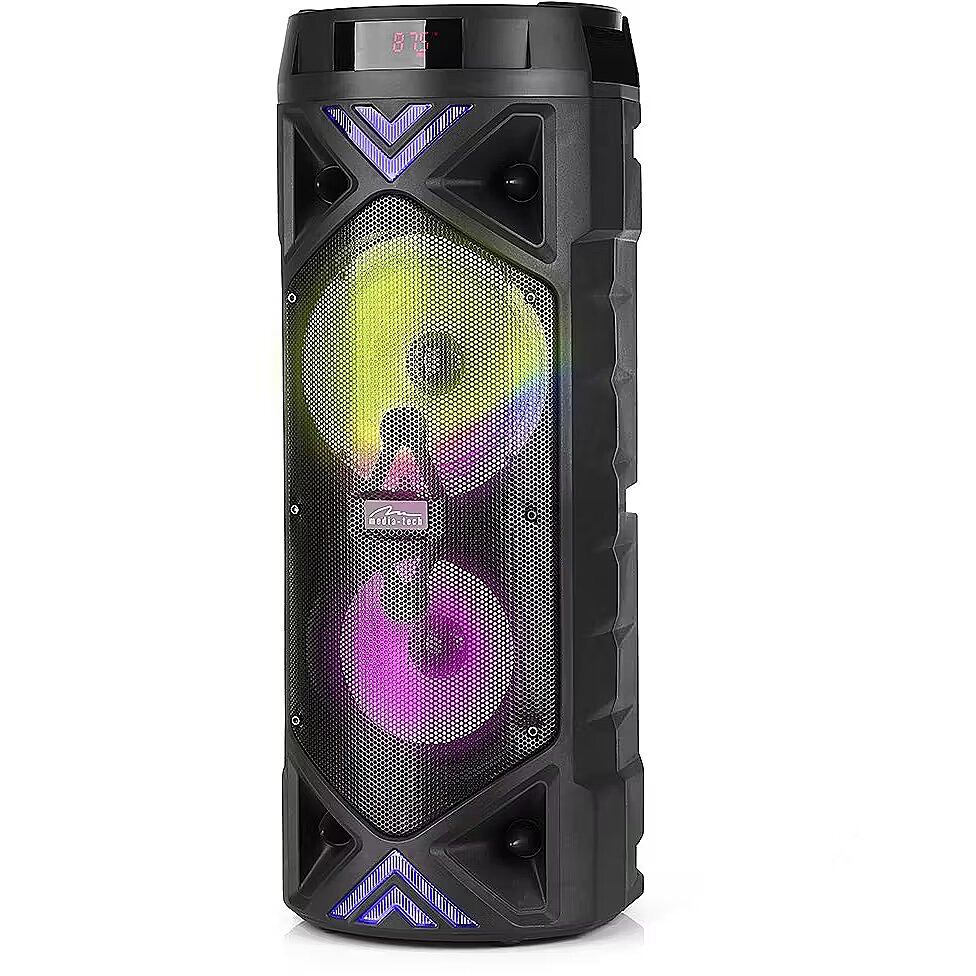 Description - FUNBOX KEG PRO MT3182 portable Bluetooth speaker Excellent sound quality Discover amazing sound quality with the FUNBOX KEG PRO MT3182 portable Bluetooth speaker from Media-Tech. Equipped with 50W RMS power and an impressive 1400W PMPO, this speaker delivers clear and powerful sound. Two 6.3 speakers guarantee deep bass and crystal clear highs. Fun for any occasion With the KARAOKE function, the FUNBOX KEG PRO MT3182 will turn any party into an unforgettable event. The microphone volume control and ECHO effect will let you sound like a real star. The 6.3mm jack microphone jack and remote control give you full control over the party. State-of-the-art Bluetooth technology With Bluetooth 5.0 + EDR, A2DP, AVRCP, you can enjoy a stable connection and excellent sound quality wirelessly. Fast pairing and long range means you can play music from any mobile device without interruption. FM radio and MP3 player Enjoy your favorite radio stations with the built-in FM radio with automatic station search (87.6-108MHz). The MP3 player allows you to play music from micro SD cards and USB storage devices, giving you complete freedom to choose your audio source. Full control over the sound With the volume control and equalizer, you can adjust the sound to your preferences. The LED information display allows you to easily monitor the settings and status of the device, providing intuitive operation. Powerful and portable Equipped with a built-in rechargeable lithium-ion battery, the FUNBOX KEG PRO MT3182 provides up to 8 hours of use on a single charge. Powered by a 5V USB cable, charging is quick and convenient. The compact size (228x572mm) and low weight (3.03kg) make the speaker easy to carry and ideal for any occasion. Versatile connectivity The speaker offers multiple connectivity options, including an AUX jack for direct connection to audio devices. With support for a variety of media, you can enjoy music from multiple sources, making the FUNBOX KEG PRO MT3182 an extremely versatile device. Intuitive control Using the remote control, you can easily manage the speaker's functions without having to go near the device. This solution provides convenience and comfort, making control of your music never been easier. FUNBOX KEG PRO MT3182 is an ideal choice for all music lovers who appreciate high quality sound, functionality and modern design. Make every party special with Media-Tech!