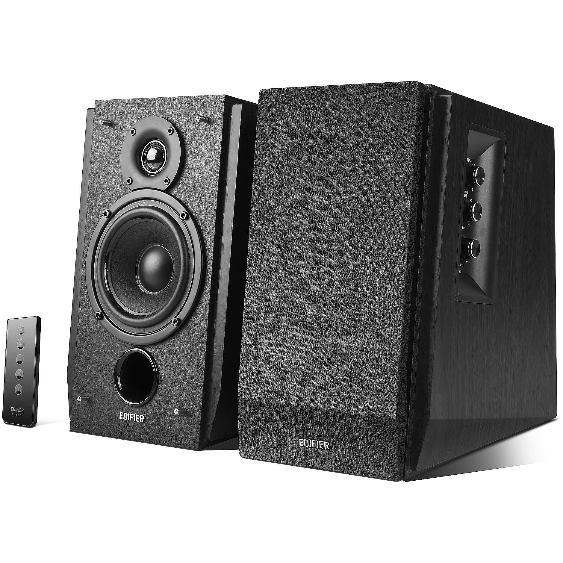 description_en - These versatile speakers will have you wanting to play every device off them. Plug in your gaming console, computer or TV for exceptional sound quality. The R1700BT has built-in Digital Signal Processing (DSP) and Dynamic Range Control (DRC) to prevent distortion. The R1700BT is equipped with a 19mm dome tweeter and a 4-inch bass driver in each speaker creates rich lows and clear highs. With the front facing bass reflex port, low frequencies are emphasized giving the bass more power.