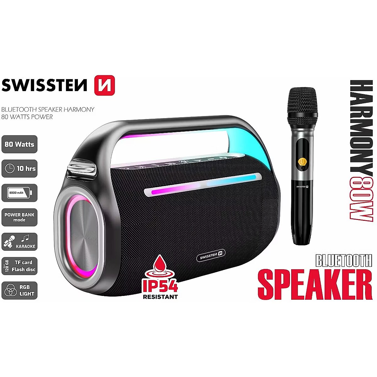 description_en - Are you looking for a quality speaker that will exceed all your expectations for listening to music? The Swissten Harmony speaker offers unmatched sound performance with versatile features, so it elevates your listening experience. With an impressive 80 watts of power, it floods any space with stunning sound quality that immerses you in your music, podcasts or videos.
