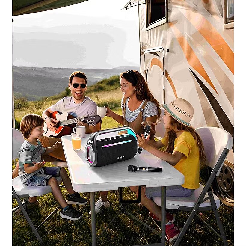 В комплект также входит микрофон, который предлагает развлечение на любой вечеринке или празднике. Он просто сопрягается с динамиком, и затем можно начинать караоке или хостинг.